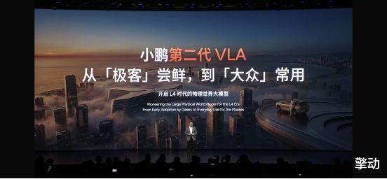 小鹏选择了后者,并给出了答案——第二代VLA。台上,何小鹏背后的大屏亮起一行字:第二代VLA,本月全量推送。历经四个月的迭代,这套被官方称作“开启L4时代的物理世界大模型”——第二代VLA,目标听起来甚至有些朴素:让智驾变成“妈妈”都爱开的国民智驾”,推动自动驾驶从“极客尝鲜”走向“大众常用” 。