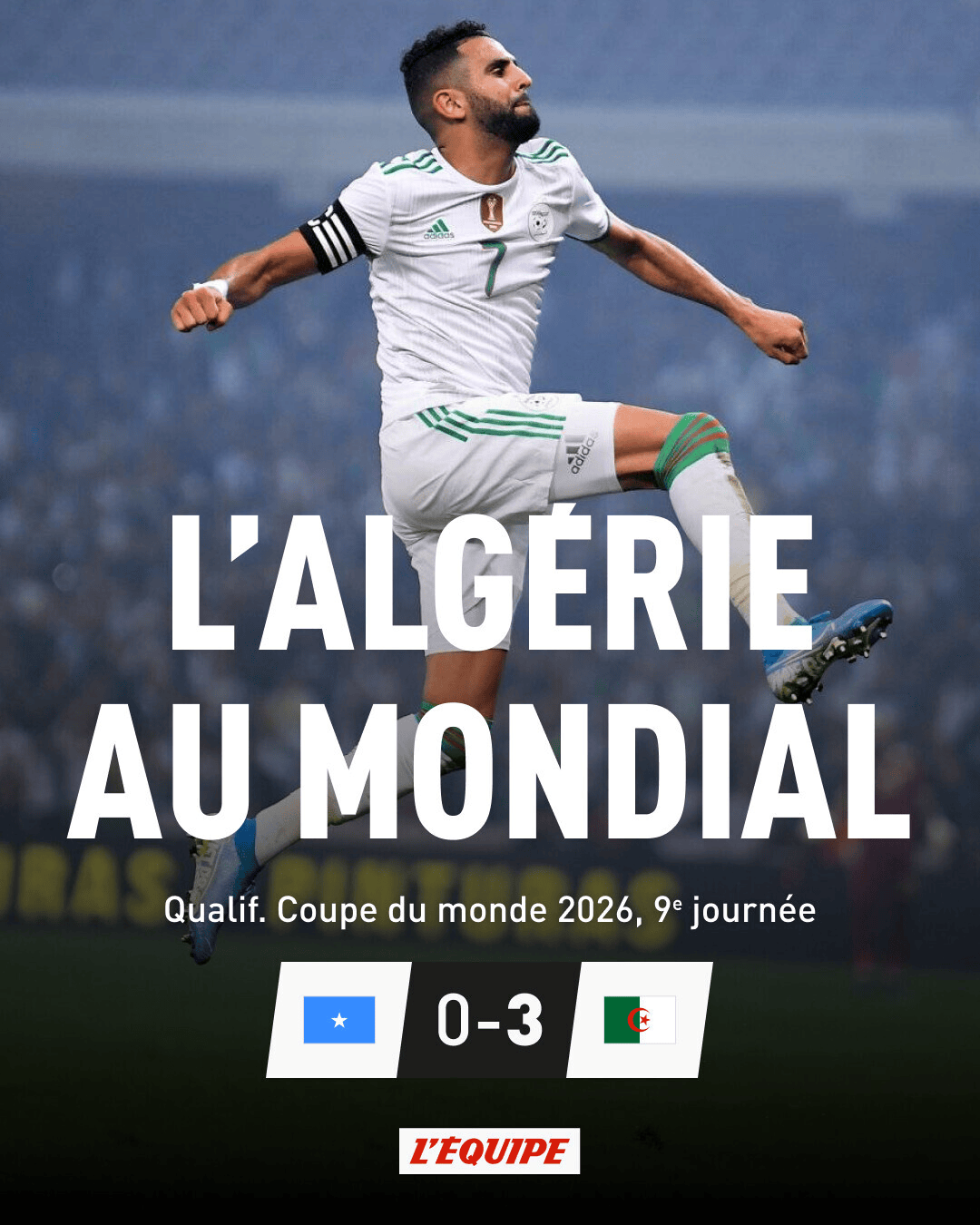 这也宣告着阿尔及利亚将在美加墨世界杯中时隔12年重返世界杯舞台。他们上次晋级世界杯还是2014年,当时他们打进了16强;之后他们连续缺席了两届世界杯。