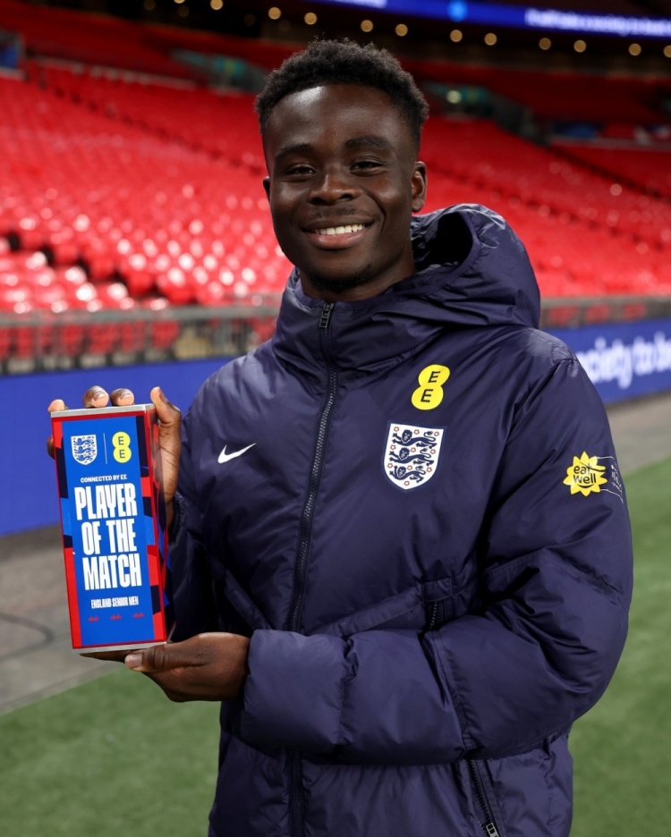萨卡此役为英格兰队首发出战,打进一球,英格兰队官方宣布,他当选本场比赛队内最佳球员。