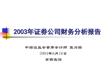 财政部在证监会的支持和配合下启动此项工作后,申万在晓蔚及顾旭等领导下在起草此项制度并最终定稿中发挥了关键作用。具体承担此项工作的是1993年在上财会计系取得硕士学位的查英男。他对证券公司的相关业务非常熟悉,会计理论、技术和制度的基础也好,工作又特别细致,全身心投入此项工作,赢得财政部、证监会相关部门,以及其他单位所有参与者的一致好评。申万在晓蔚及顾旭领导下在此制度制定过程上发挥的关键作用也铭记在所有参与者的脑海中。如下是2003年由财政部颁发的《金融企业会计制度-证券公司会计科目和会计报表》。