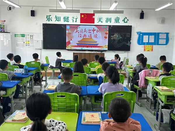 活动前期,各班级老师精心筹备,结合学生年龄特点设计专属内容:低年级以“诵中秋、知习俗”为核心,选取浅显易懂的中秋童谣与短诗,搭配趣味讲解;中高年级聚焦“品诗词、抒壮志”精选中秋经典与爱国名篇,让不同学段学生都能在活动中收获独特的文化体验。