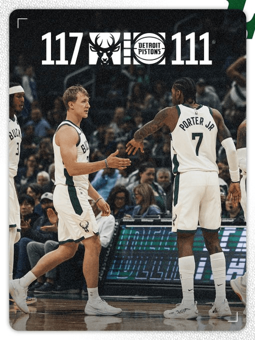 雄鹿队分享数据海报庆祝球队战胜活塞:在主场取得胜利