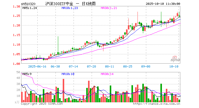 沪深300ETF中金(510320)业绩比较基准为沪深300指数收益率,管理人为中金基金管理有限公司,基金经理为刘重晋,成立(2025-04-16)以来回报为26.26%,近一个月回报为6.10%。