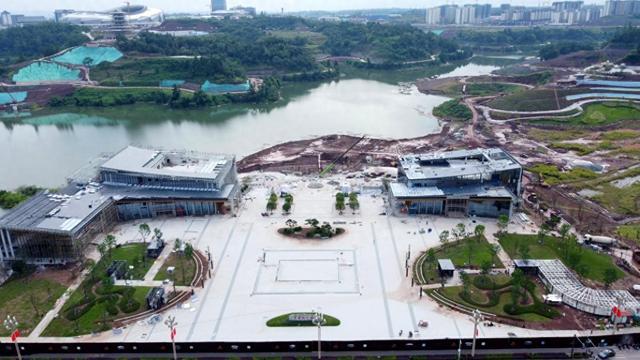 10月9日,在位于广安临港经开区的官盛湖生态湿地公园项目建设现场,工人们忙着铺设环湖道路的基础层,配套用房的外立面搭建也在同步进行,各项工序有序衔接。据项目技术负责人付磊介绍,目前正在进行环湖道路的贯通、广场铺装绿化及配套用房外立面施工,下一步,将进行乔木栽植、木结构施工和室内装修。