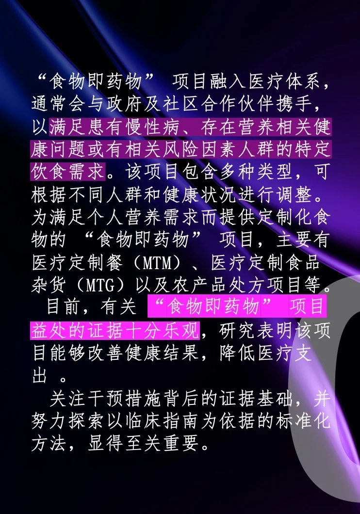 [二R]食物即💊” 项目是与医学营养治疗同步开展的以食物为基础的干预措施,美国营养与饮食学会(Academy of Nutrition and Dietetics,AND)正采取积极举措,这些项目有望改善健康状况、提升人们的幸福感。
