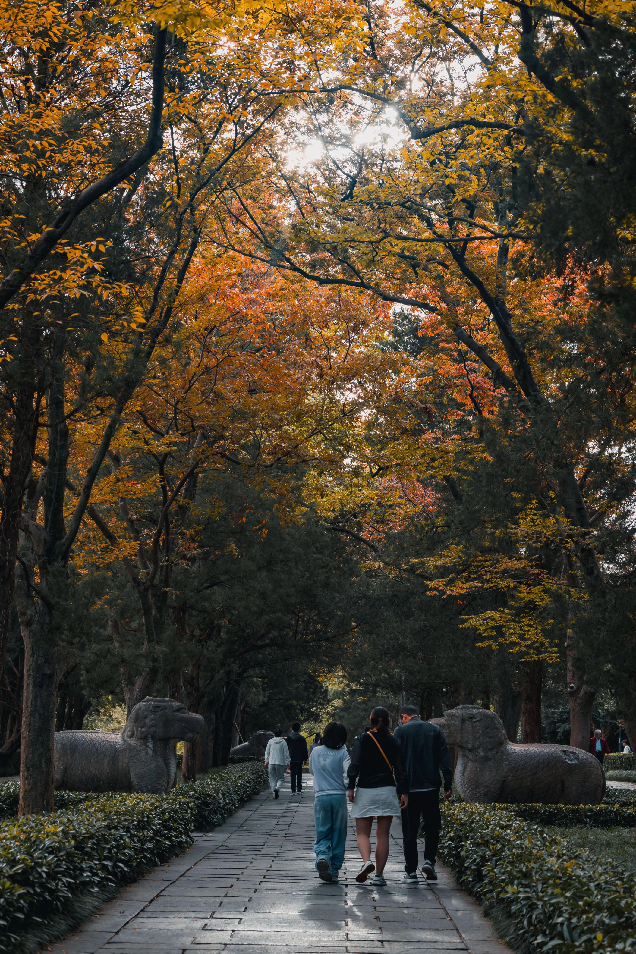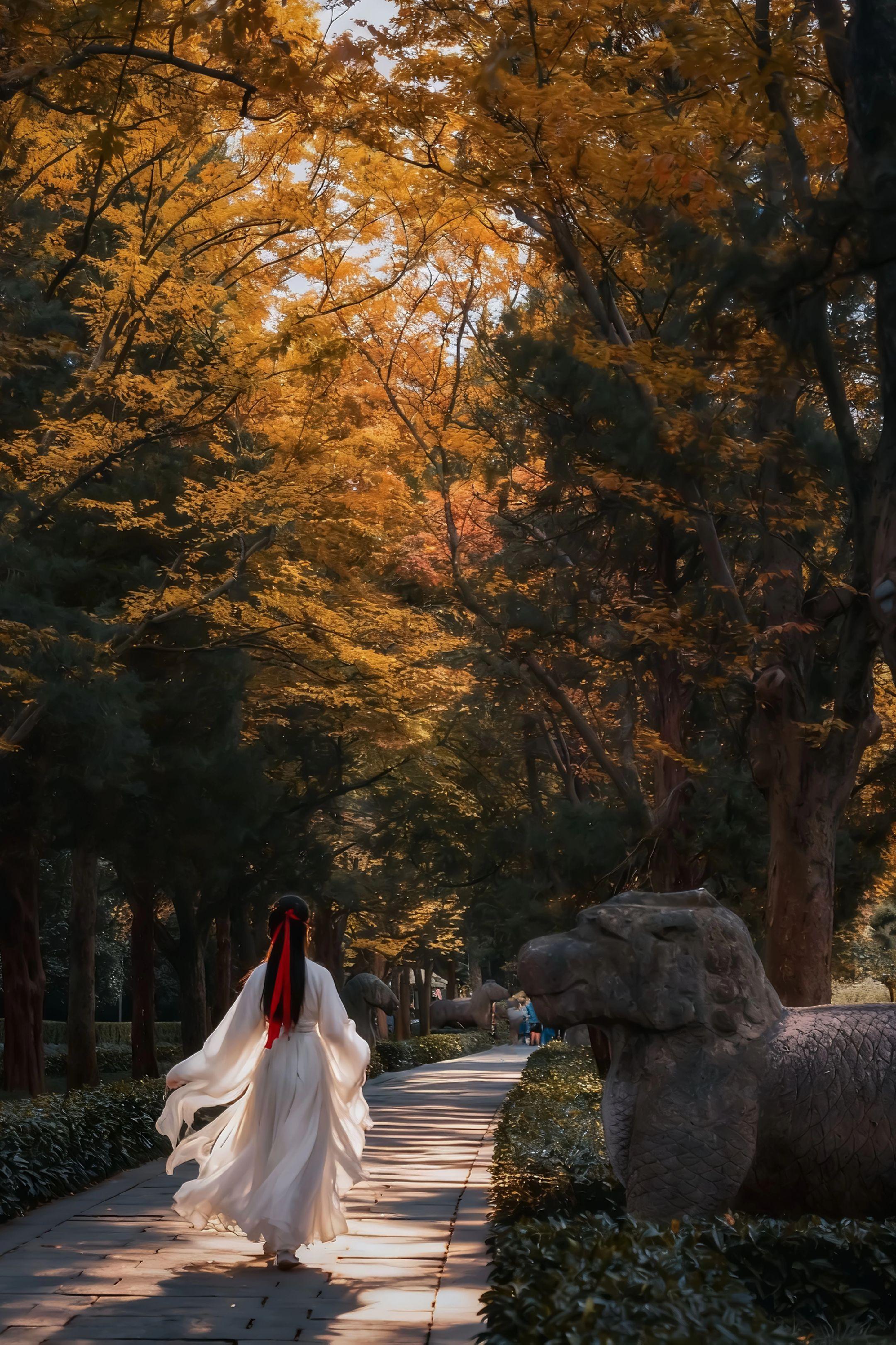 石象路开始变色了 这个秋天一起去趟南京吧。南京的秋天从明孝陵石象路的榉...