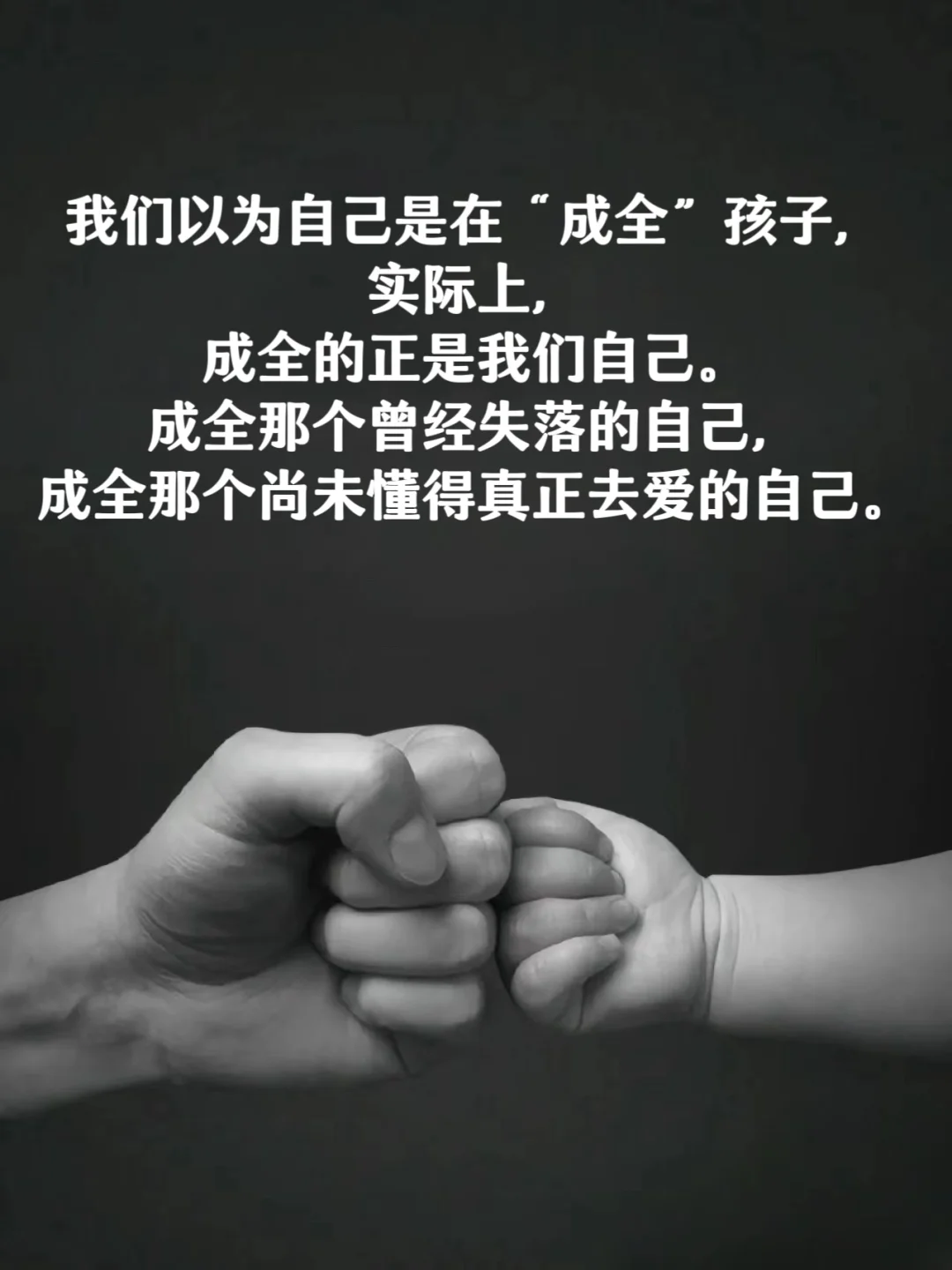 我们以为自己是在:“成全”孩子,实际上,成全的正是我们自己。成全那个曾经失落的自己,成全那个尚未懂得真正去爱的自己。