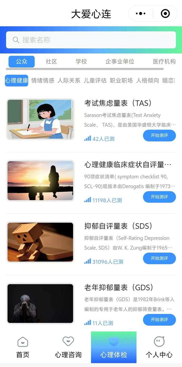 “大爱心连”公益服务平台是由市卫健委组织搭建,市七院负责运行维护的心理服务云平台。市民可在电脑或手机微信小程序上搜索“大爱心连”,便可得到免费便捷的“互联网+心理”一站式服务。平台整合了市七院、市心理学会以及各区县人才库等全市优势社会心理服务资源,设置24小时热线电话和咨询留言。平台还收录全球知名心理专家整合的200多个免费心理测试卷,帮助大家了解自己的心理健康状况。