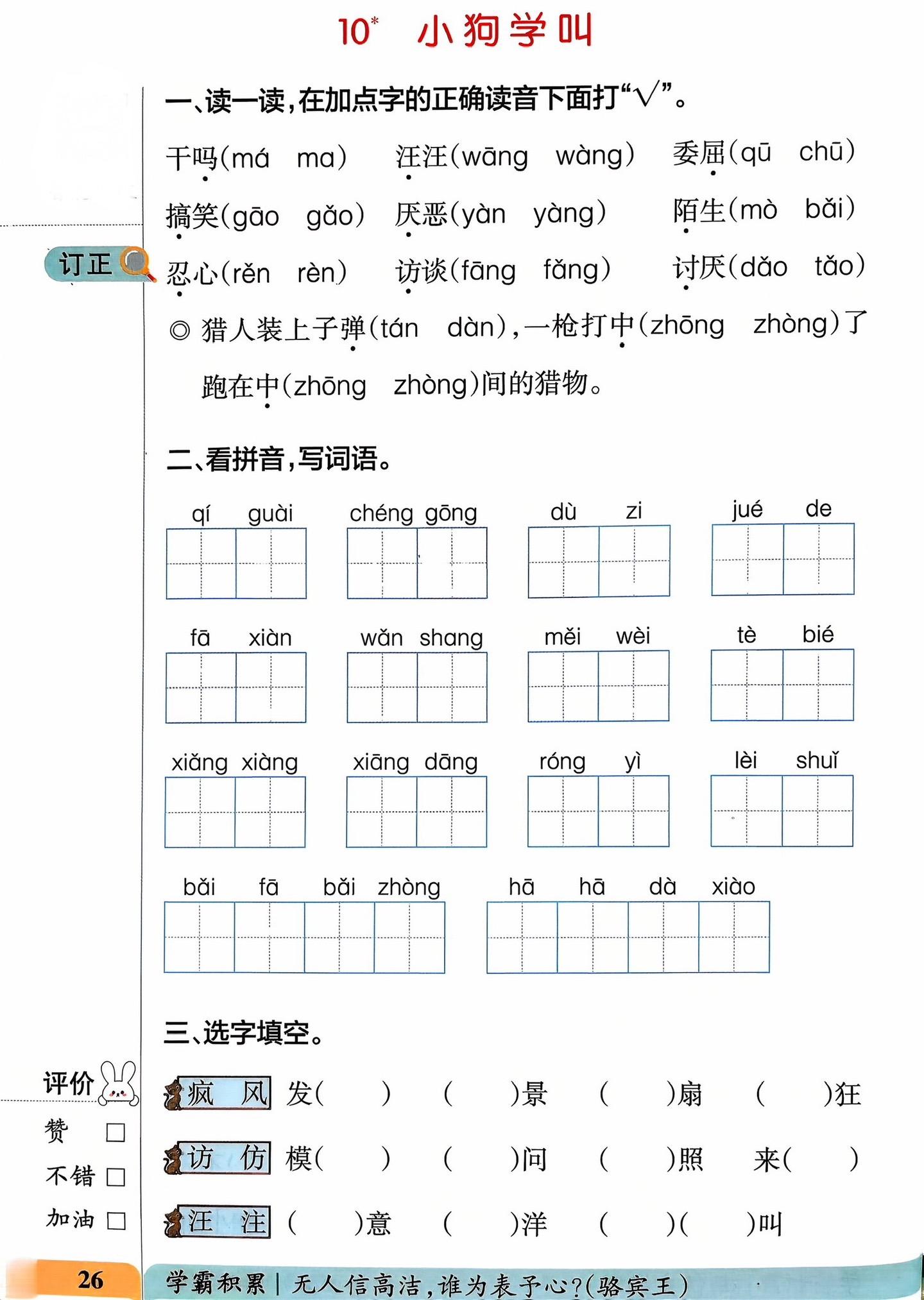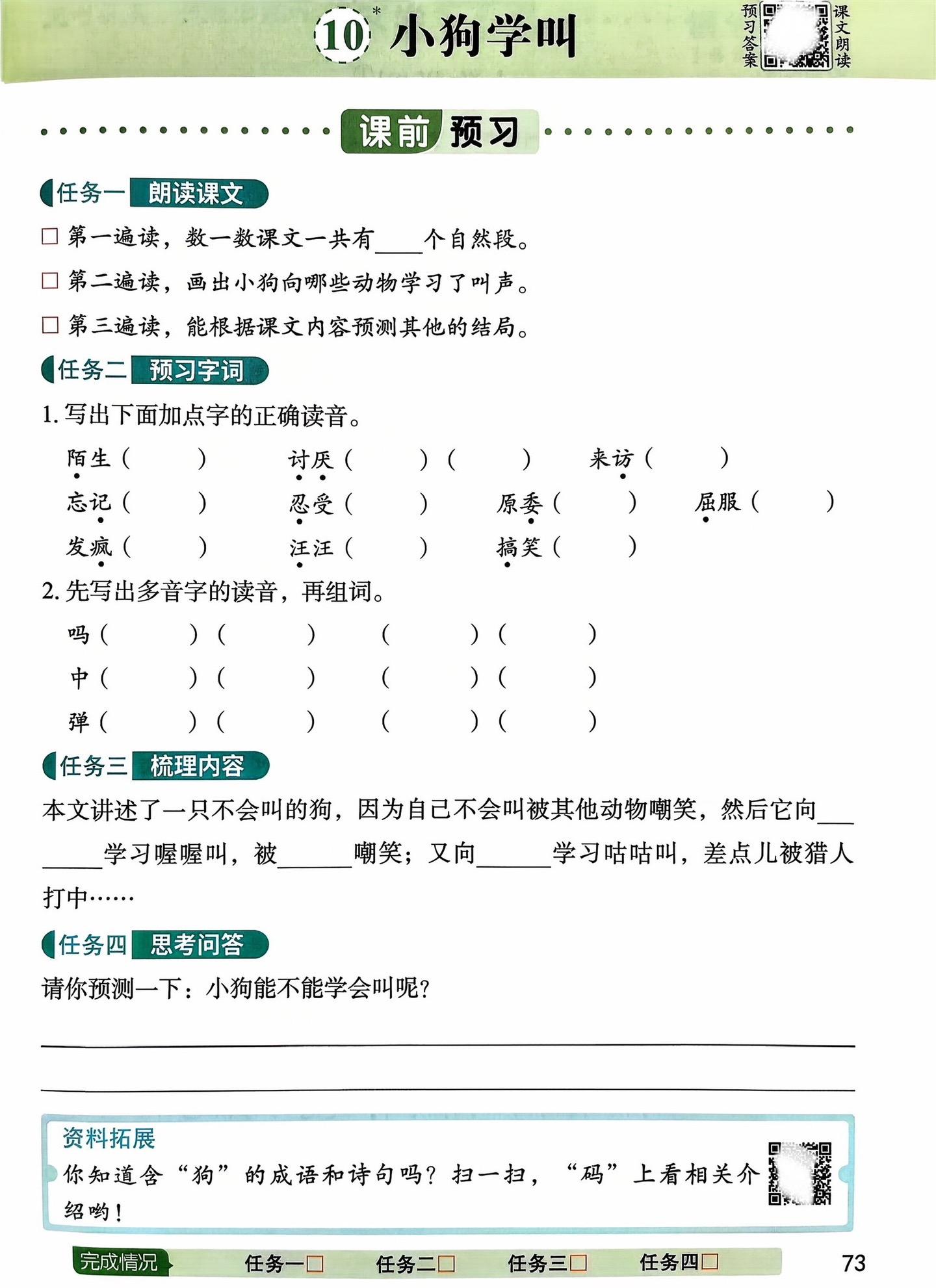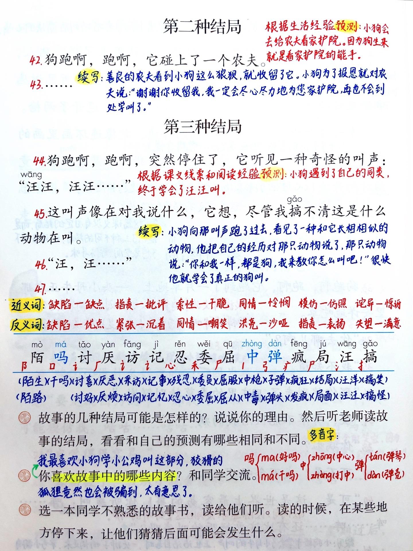 三年级上册语文《小狗学叫》笔记。 拓展:你知道哪些形容小动物叫声的词语...