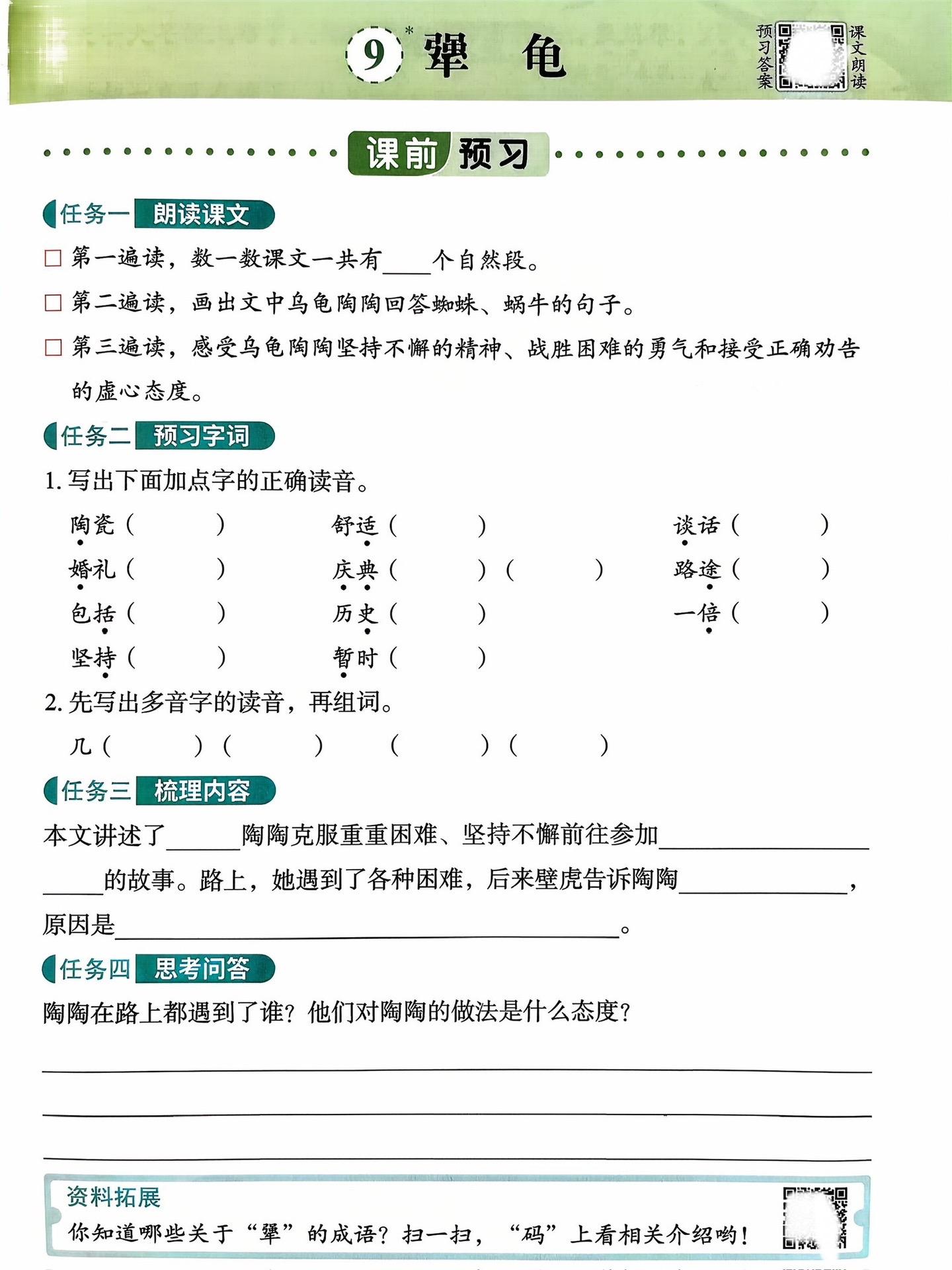 三年级上册语文《犟龟》笔记。