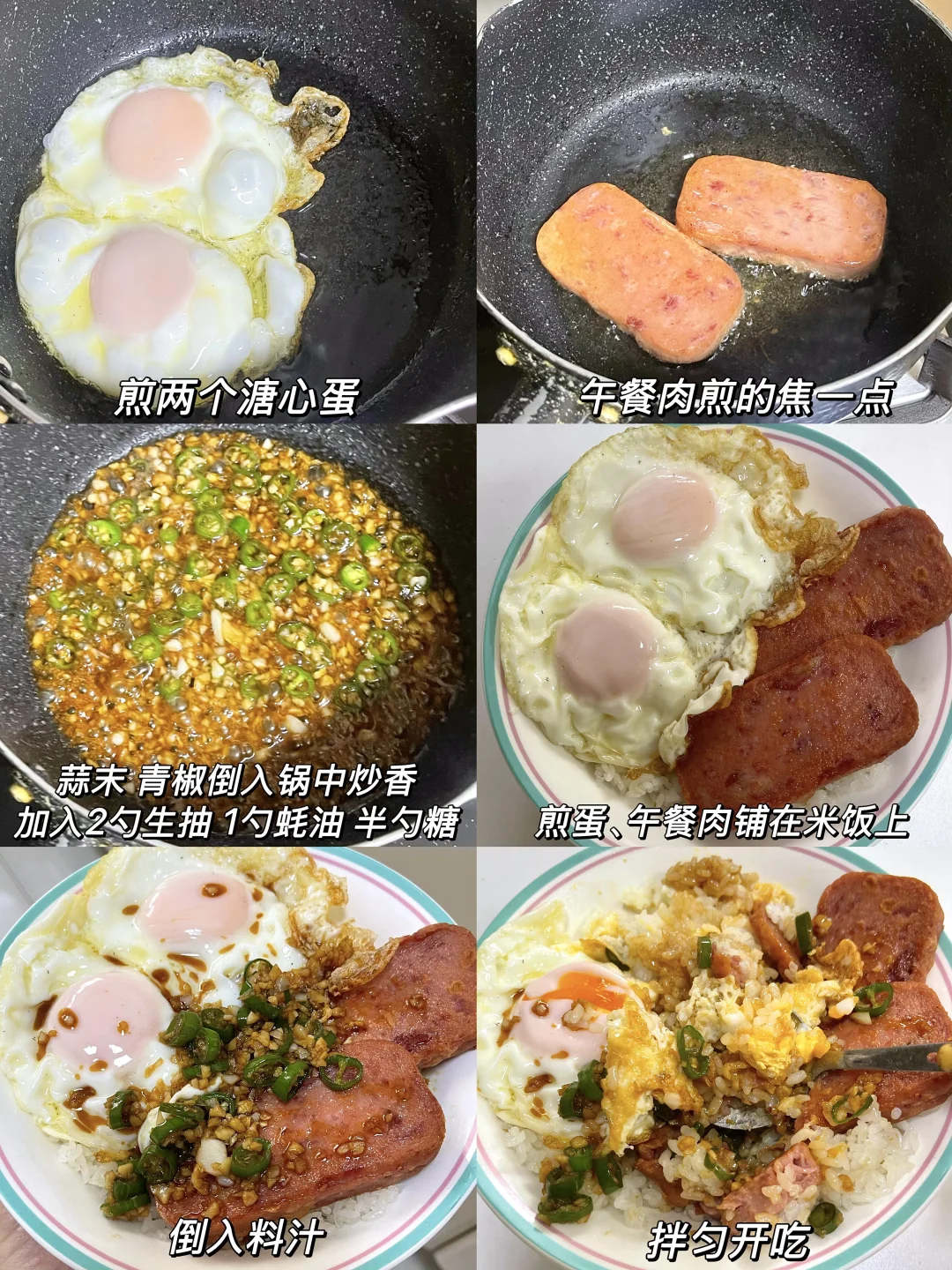 10分钟就能搞定的溏心蛋午餐肉拌饭! 爱吃溏心蛋的根本拒绝不了啊啊啊 我是用猪油煎的蛋 巨巨巨香!! 淋上料汁拌着热米饭 配着焦香的午餐肉 真的好绝! 求你们一定一定要去试试!