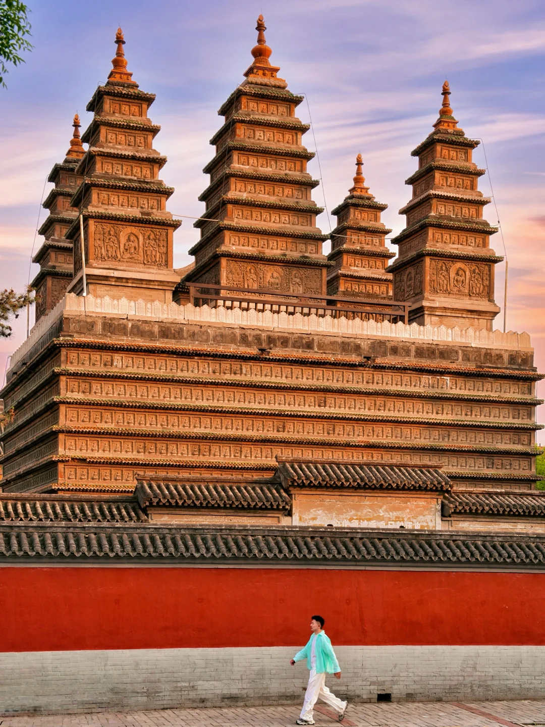 寺外红墙可拍到与五塔同框