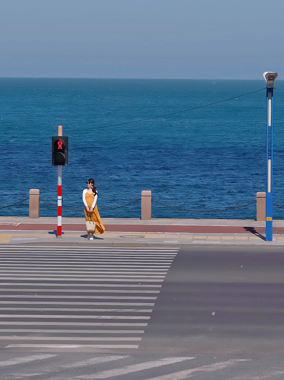 斑马线,蓝色海洋沿海公路,加上沿路得绿松树真的不像国内