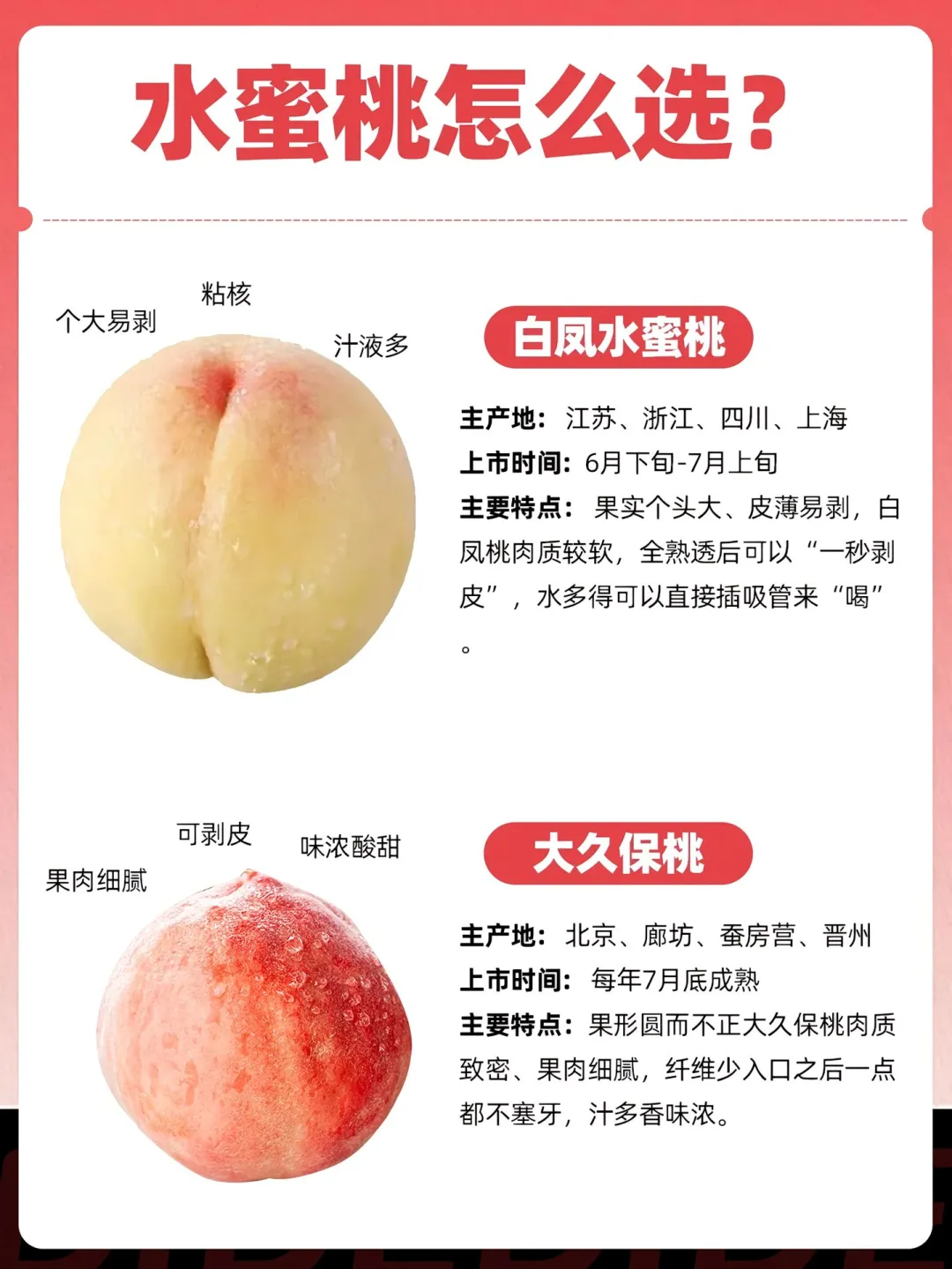 宝子们,夏天怎么能少了多汁香甜的水蜜桃呢!但市面上水蜜桃种类那么多,到底怎么选?别慌,这篇选桃秘籍请收好👇