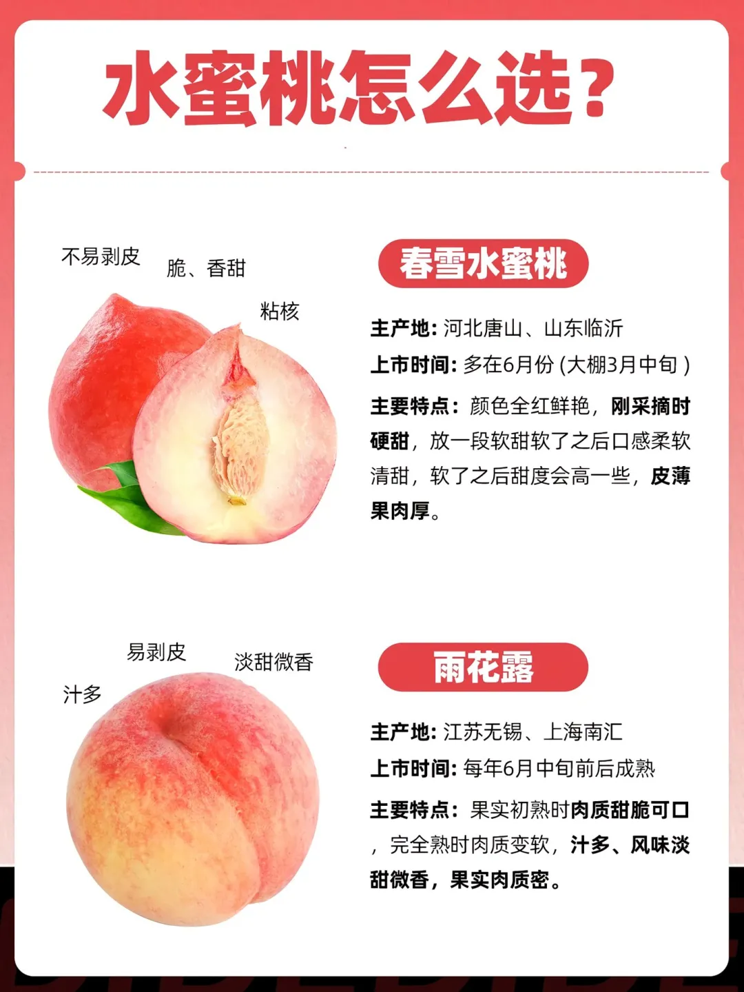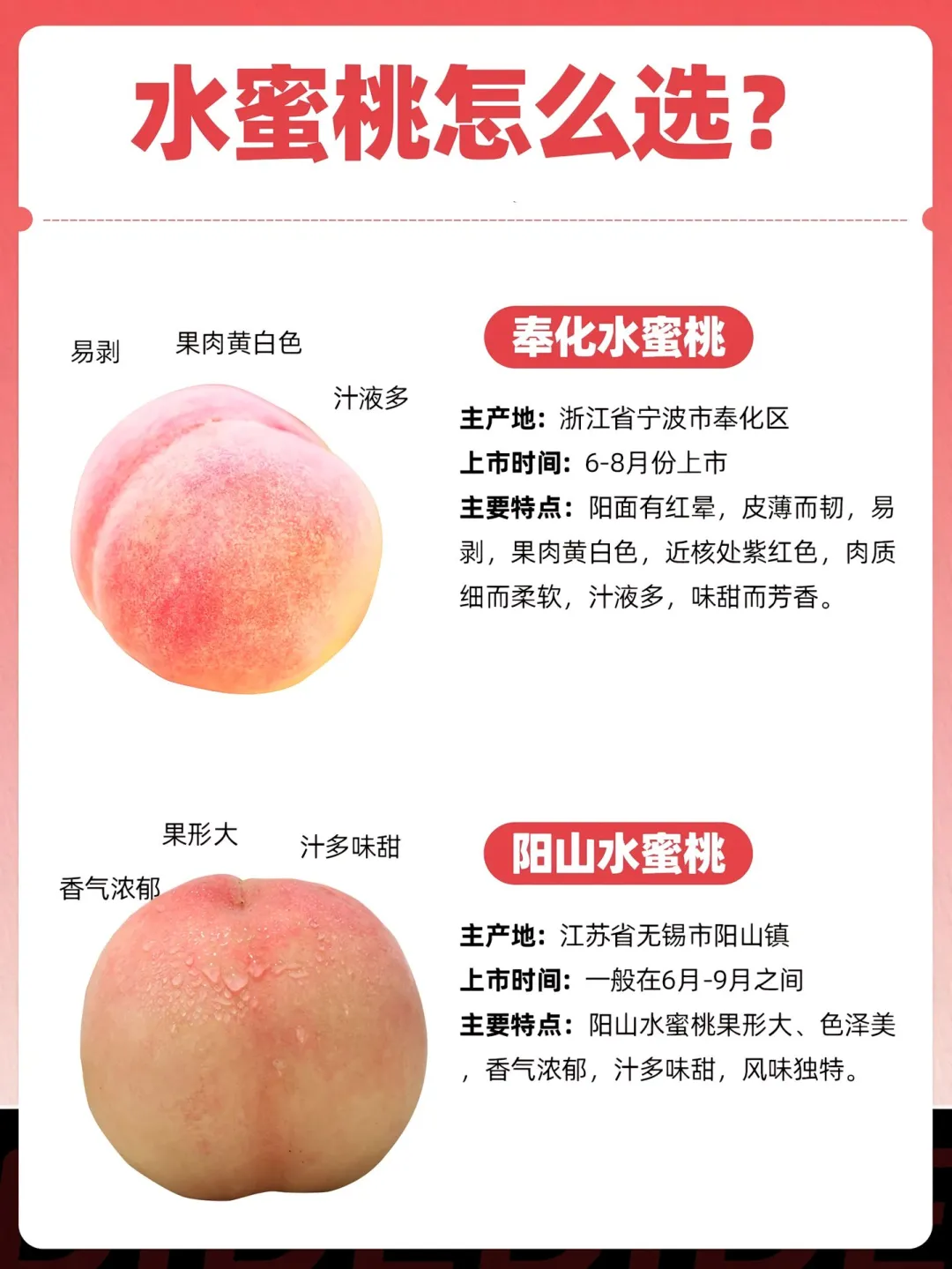 宝子们可以根据自己的喜好和上市时间去挑选心仪的水蜜桃啦~吃的时候别忘了分享这份甜蜜呀😋
