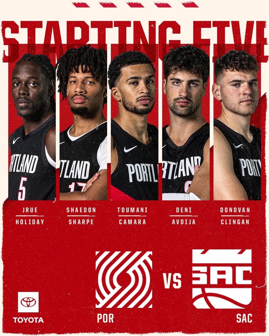 虎扑10月11日讯开拓者官方更新X,公布了球队今日的首发阵容。