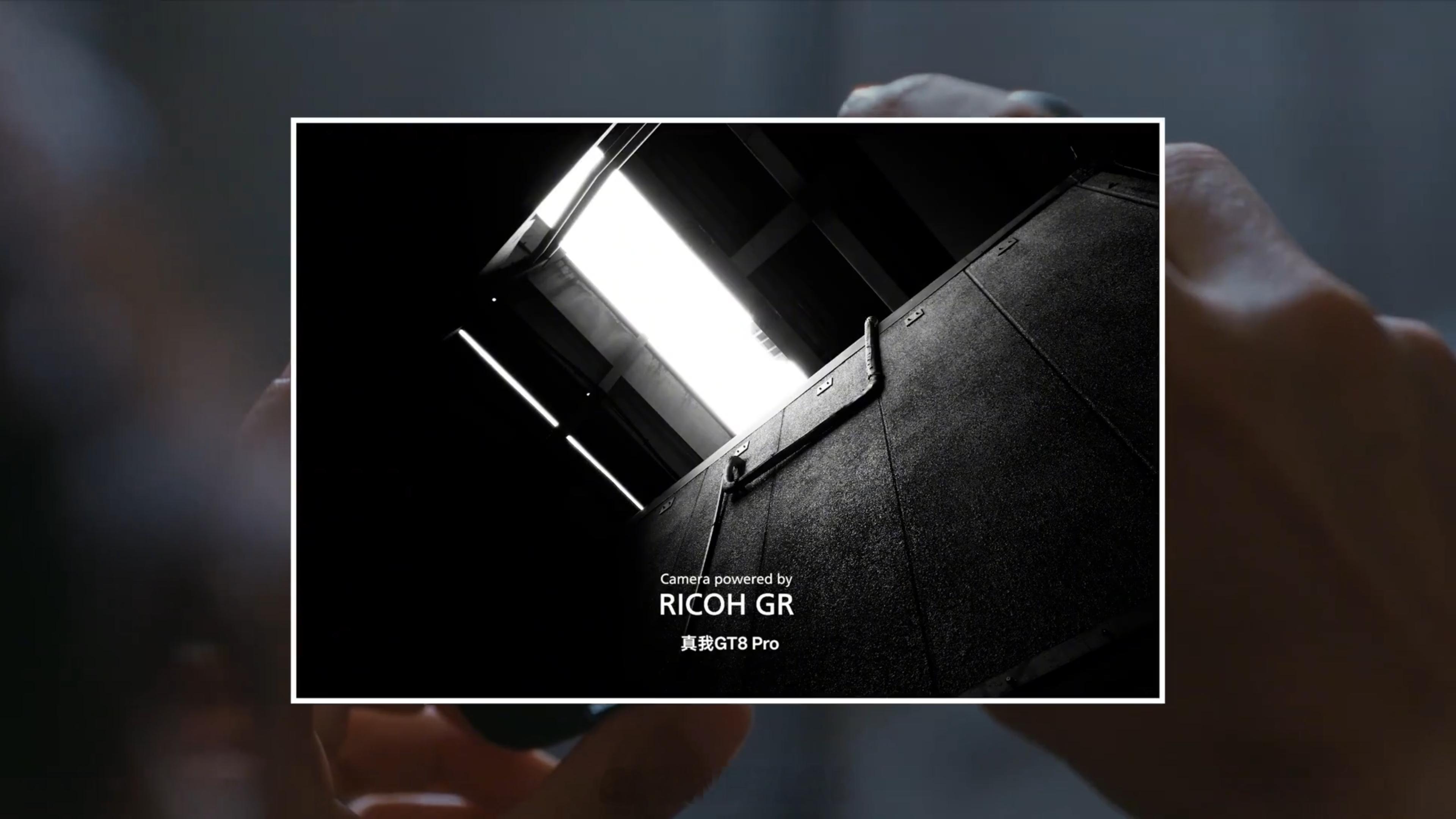 真我 GT8 系列理光 GR 模式相机页面,快门键是理光 GR 标志性的橙色椭圆形,默认焦段只有 28mm 和 40mm,刚好也是理光相机的焦段,很纯粹。