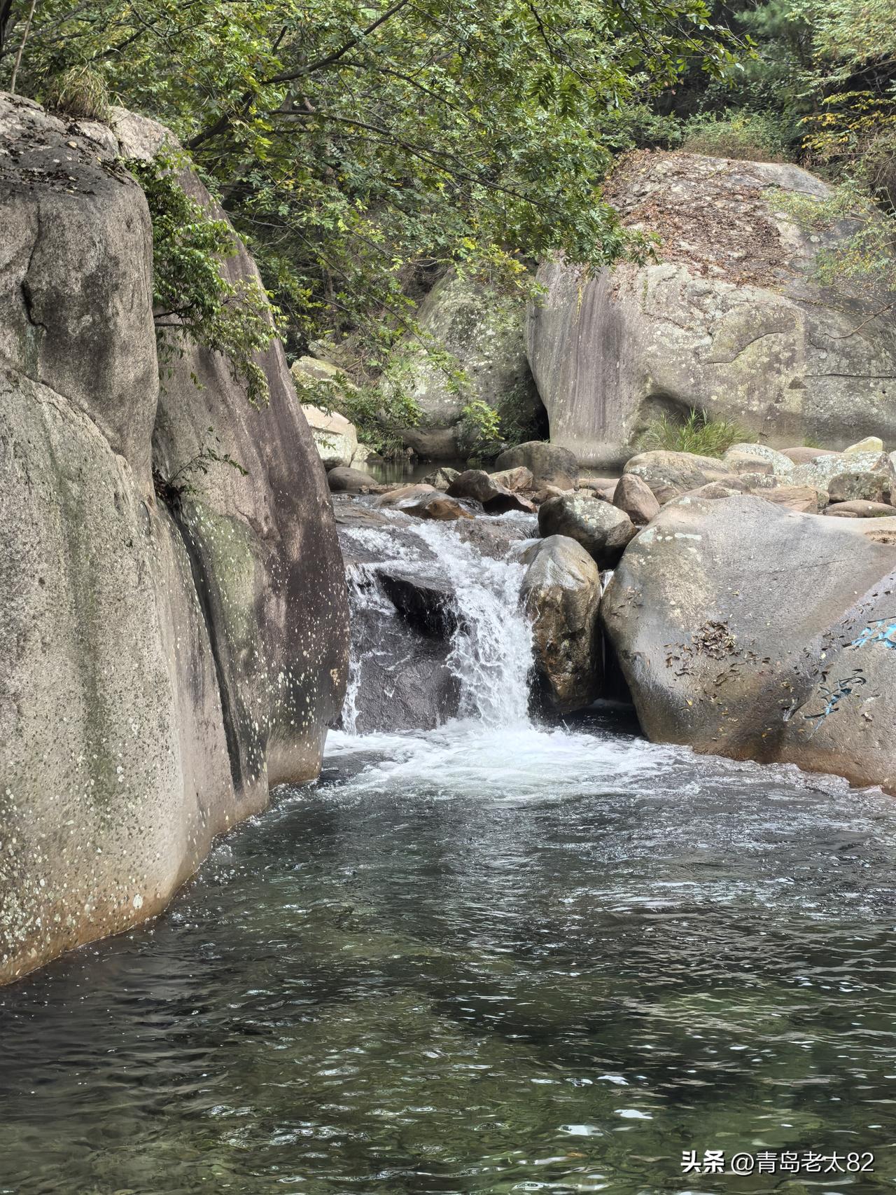 下车后路经木栈道,大约要走20分钟,就到了北九水风景区的入口。 进入口后继续往前走。五水,六水,七水,八水,九水的美景尽收眼前。 青岛最近下雨比较多,所以现在崂山北九水的水丰富多彩。 一路上听着哗啦哗啦的流水声,呼吸着新鲜空气,空气湿润,没有太阳,正是游崂山北九水的好时机。 我今天拍了很多照片,分享几张给朋友们。 建议有时间的话,来亲眼目睹崂山北九水的美。只有身临其境,才能感受到崂山北九水与众不同的美。