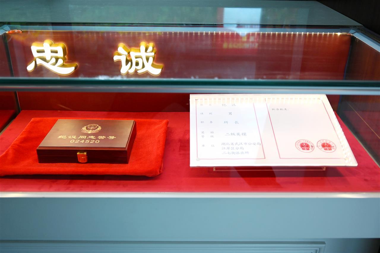 此前的9月22日下午,为缅怀英雄、传承精神,江岸区公安分局举行了简朴而庄重的纪汉同志生前警号封存仪式。他的生前战友身着警礼服整齐列队,礼兵双手捧着他生前穿过的警礼服和他使用过的警号,缓缓步入队列前方。