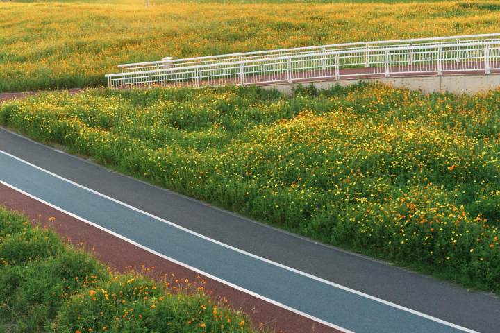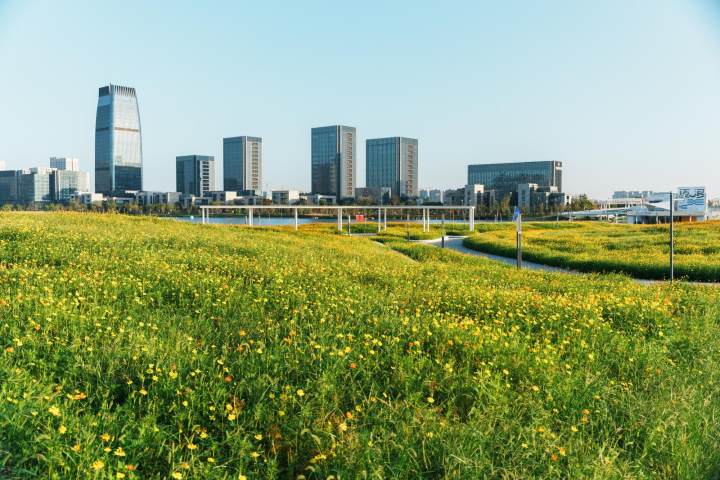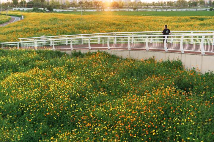 该公园通过水生植被补种、水生态系统重建等工程,形成“水下森林”景观。核心景观包含3.3万平方米的花田,春季的油菜花海,一度让这里成了网红打卡点。