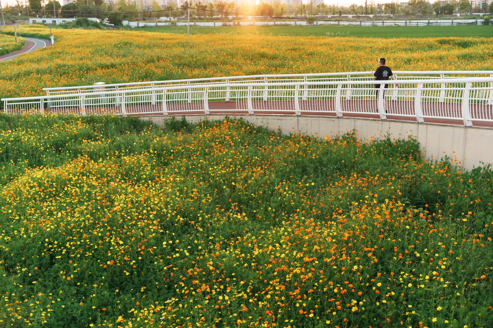 今年秋季,花田种上了大片的波斯菊,现在正肆意盛开。