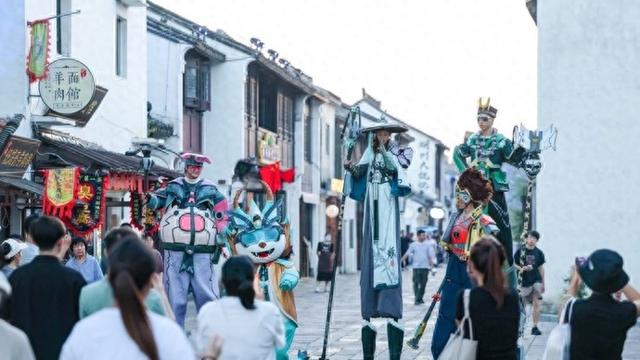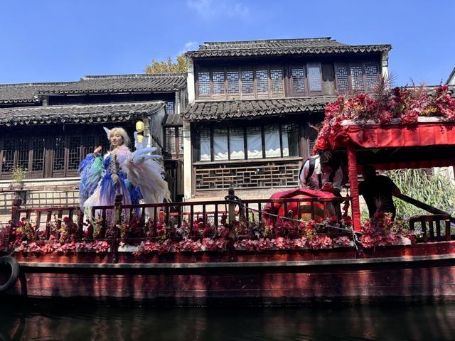 在白天,古镇便切换为巡游嘉年华的主场。非遗代表性传承人将带领特色展演方阵与游客互动,国际艺术家穿梭于水岸街巷,乌篷船上的演员吟唱江南小调,形成“船在水中游,人在画中坐”的画面。