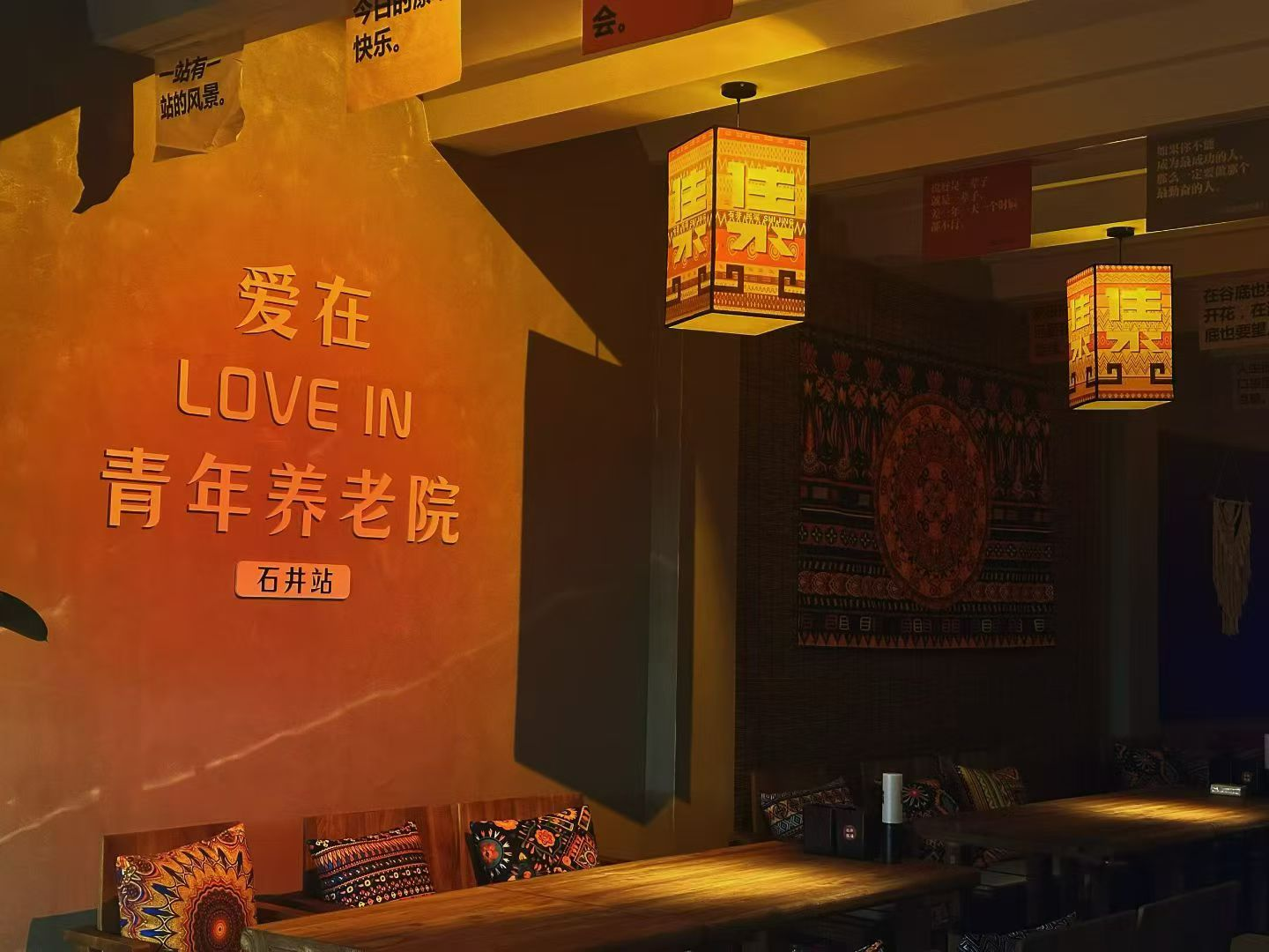 你可以睡进nostalgia的教室旅舍,做一场关于青春的梦;可以在民谣酒吧微醺听歌,与陌生人变成老朋友;可以在台球桌旁pk技术,烧鸟炉前举杯言欢;可以在共享办公桌灵感迸发,在餐厅里品尝人间烟火;可以在图书驿站静心阅读,骑行驿站整装出发……正如项目负责人说的,“青年养老院”的概念,不是躺平,而是换一种方式生活。