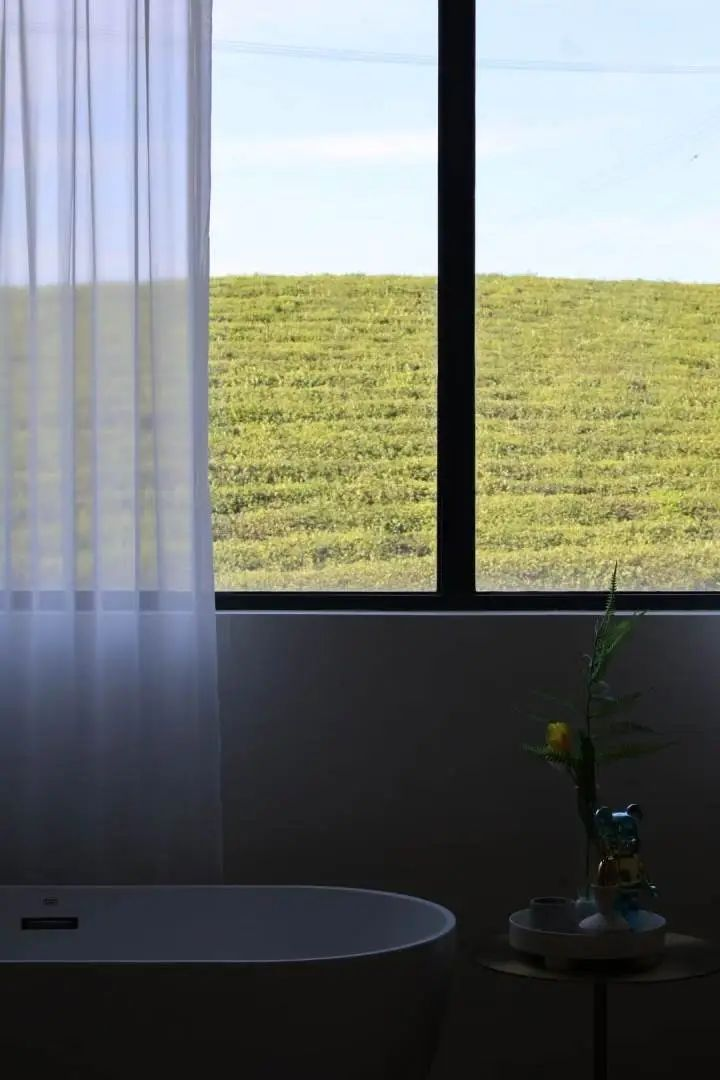 内部的房间是极具现代简约风格的,每个房间都可以不同程度地看到茶山。