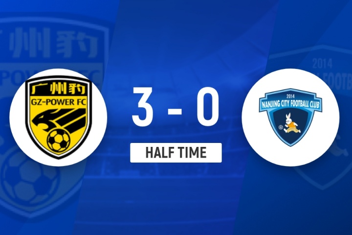 广州豹3球领先!尼康贡献1射2传!第35分钟,南京城市后场传球失误,王建明抢断后横敲,尼康外围果断远射轰出世界波,皮球钻入球门,广东广州豹3-0南京城市!↓