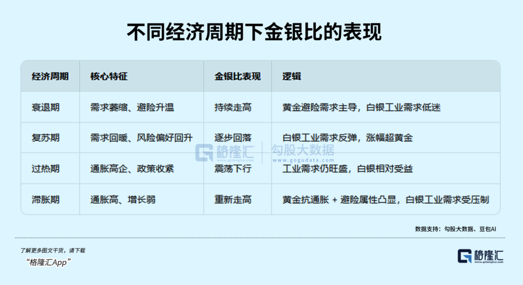 当经济进入复苏阶段,光伏、电子、新能源等行业的需求扩张,会直接拉动白银的工业消费需求,此时白银的价格涨幅往往超过黄金,进而导致金银比回落。
