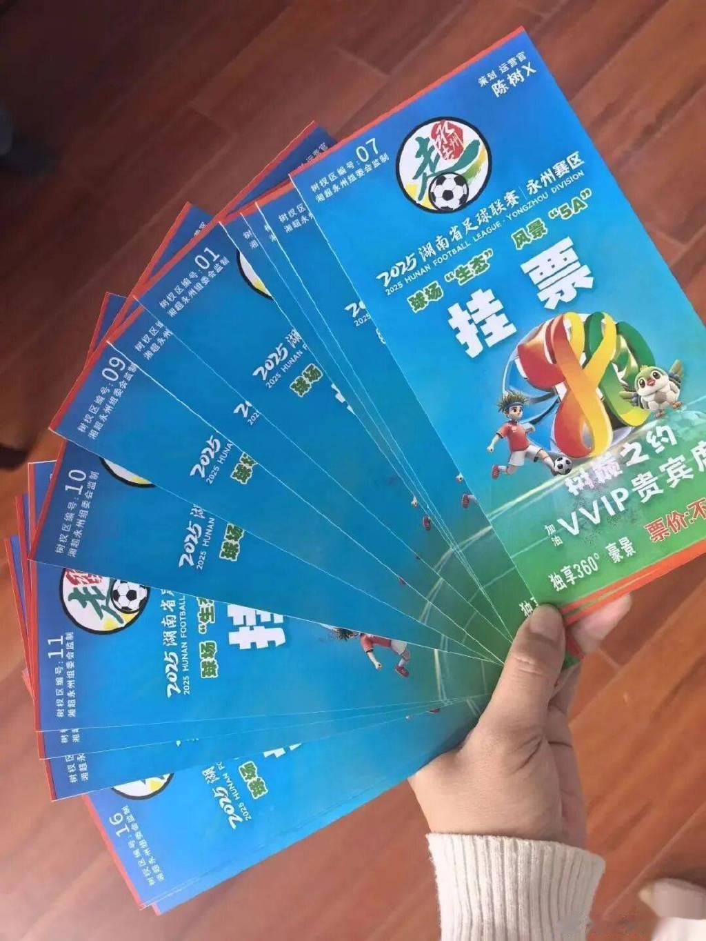 挂票系列:湘超联赛永州赛区纪念挂票,标注观赛位置与“一票难求,全靠身手”等趣味文案,成为赛事文化载体;