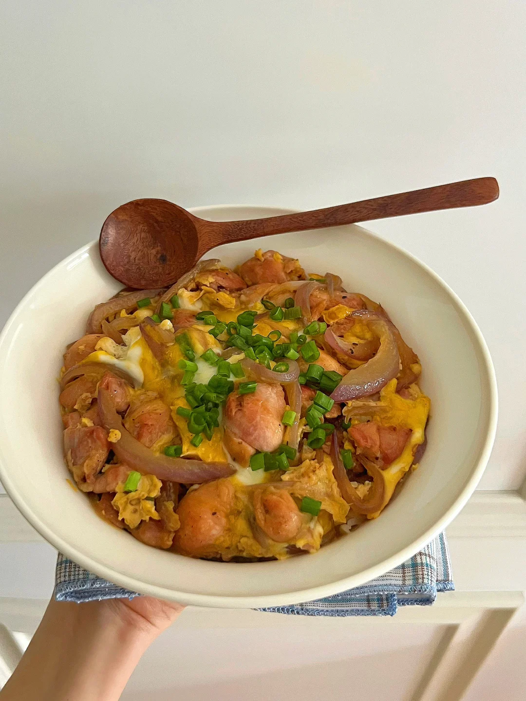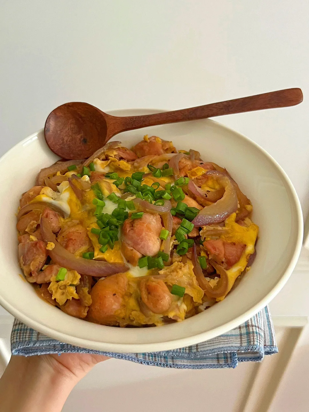 我今天吃的是葱香鸡腿滑蛋盖饭🍗