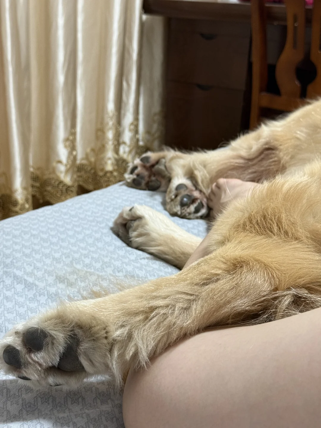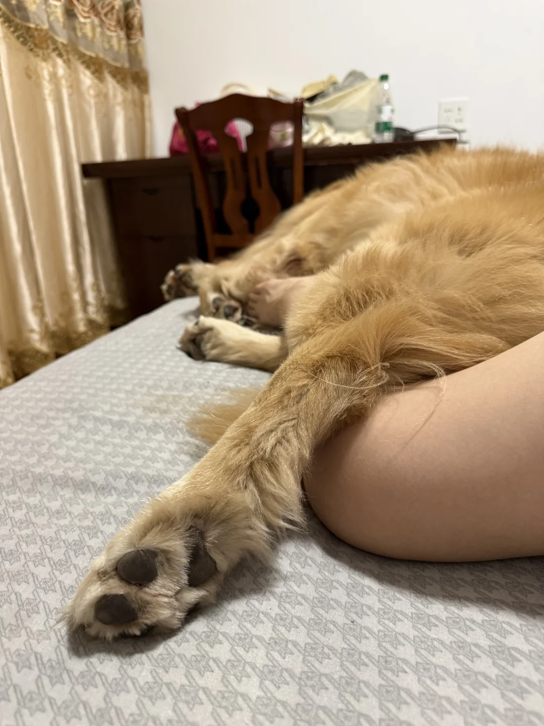 可是他就睡个几分钟,就会起来跳下床去到凉快的地板上睡…整个侍寝过程大概持续个不到十分钟吧,自从回到了老家第二天之后他就每天都这样,又一次印证了小黄这段时间真的有在疯狂长脑子诶