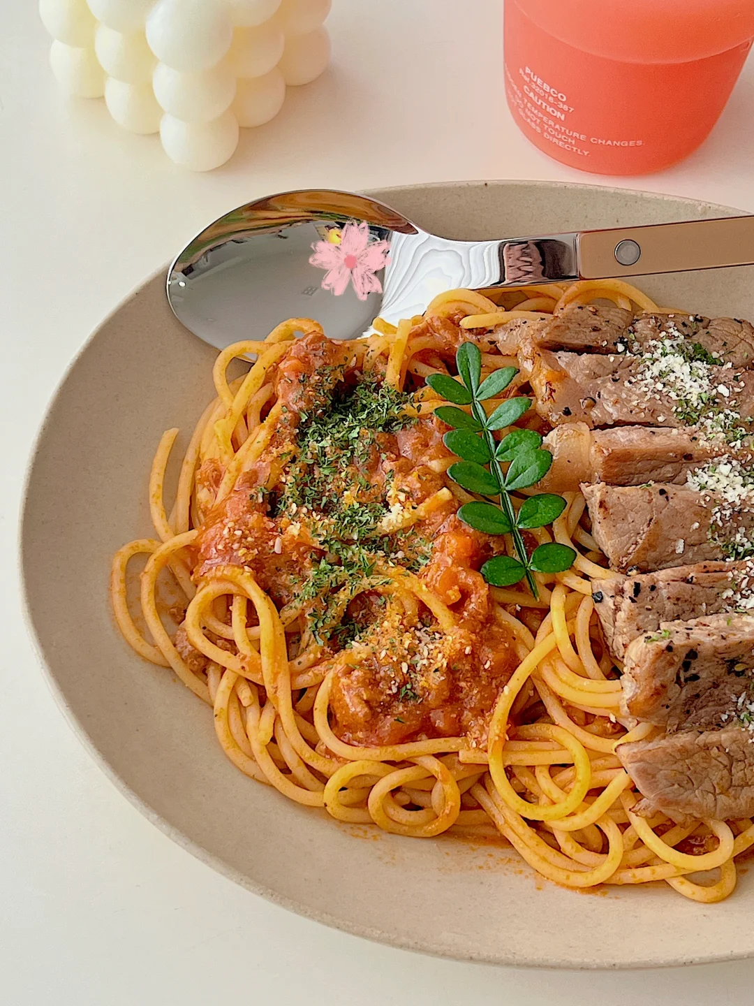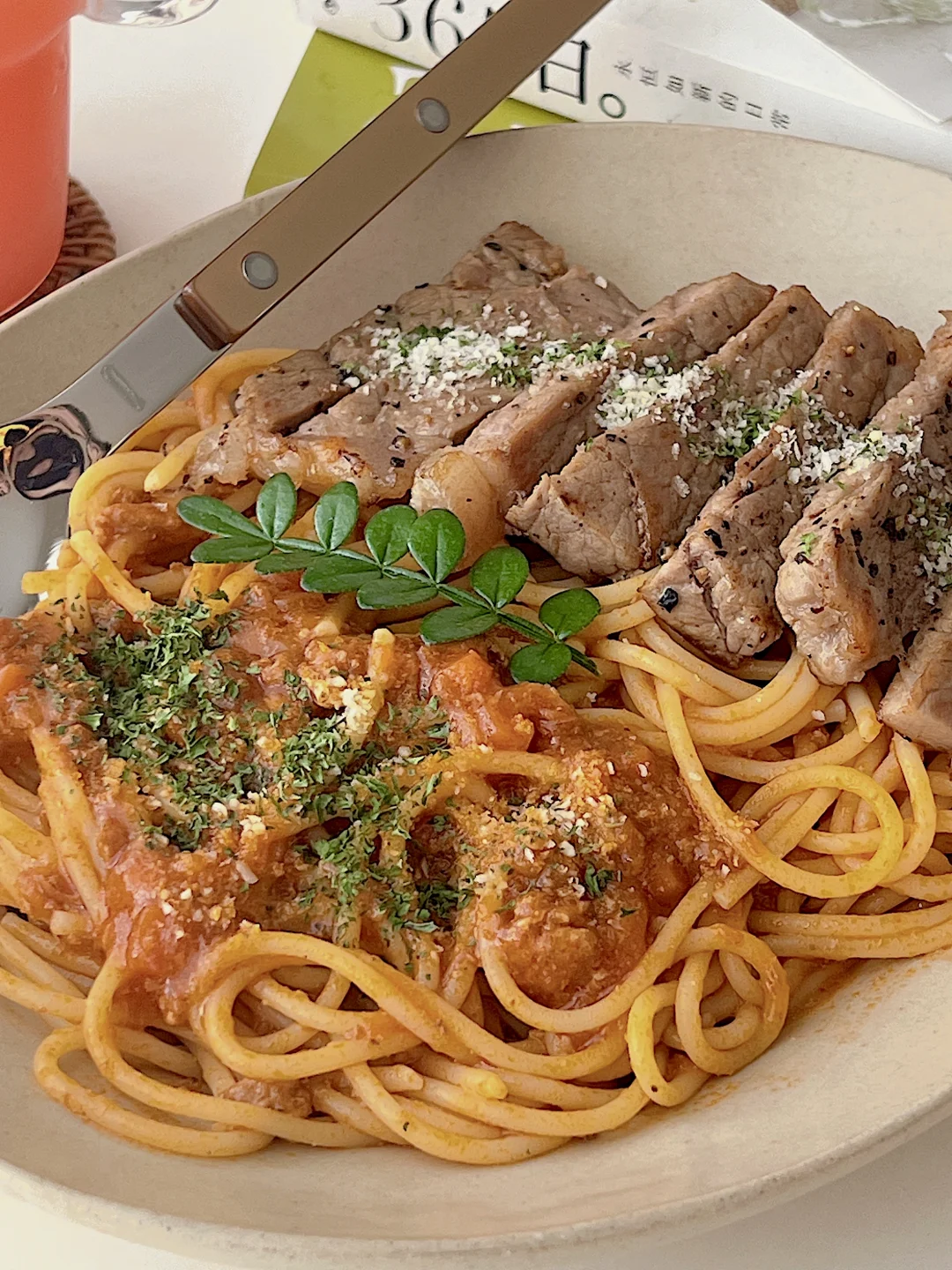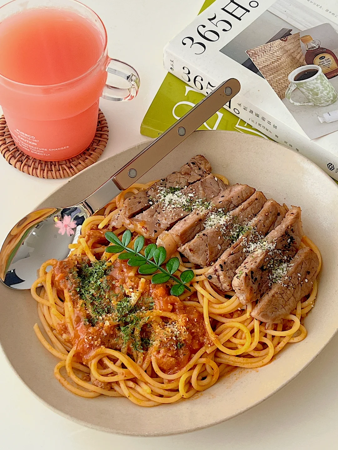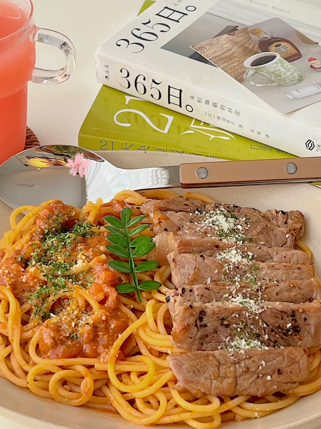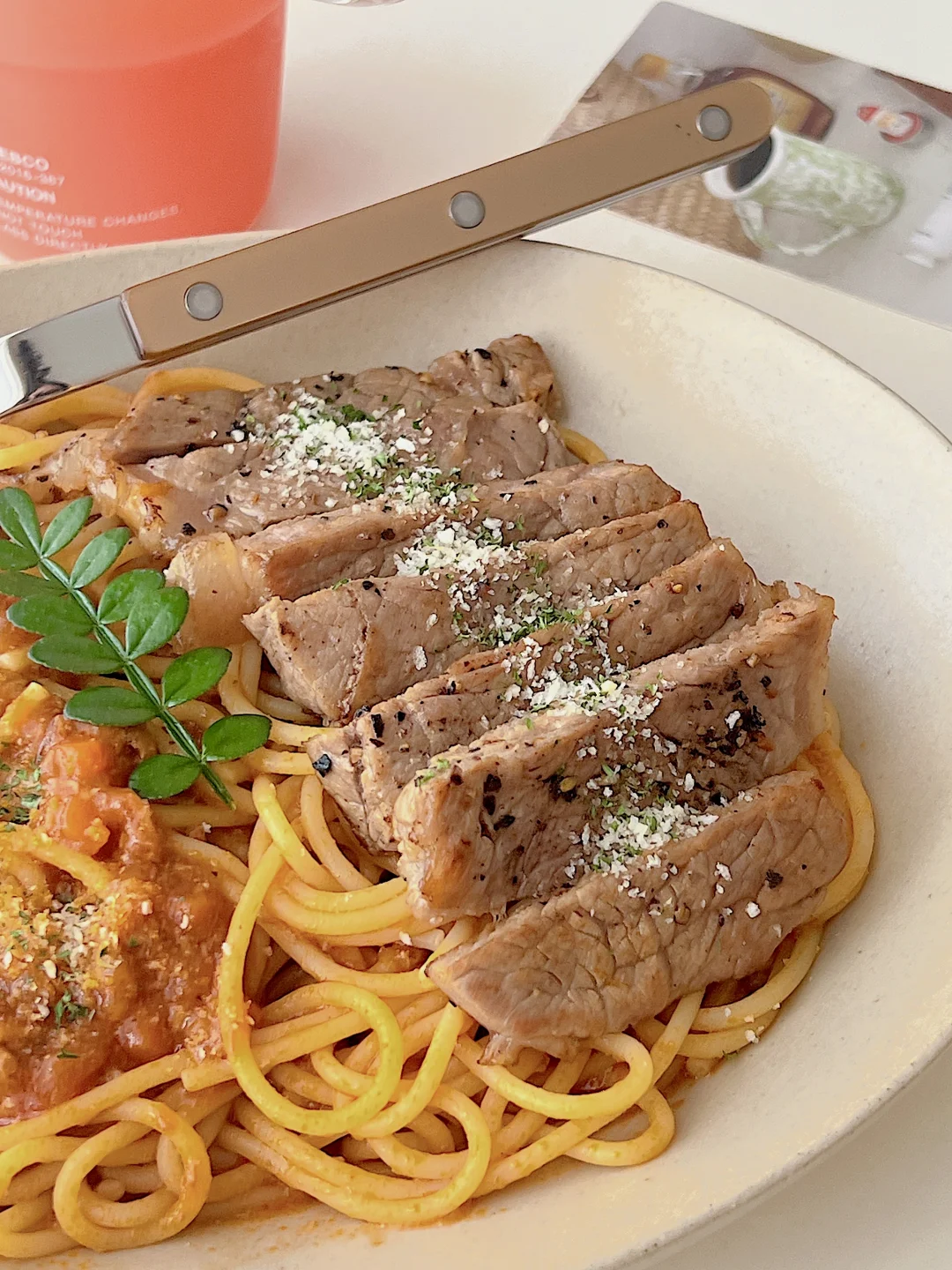 适合零厨艺|简单快手的牛排番茄肉酱意面🍝