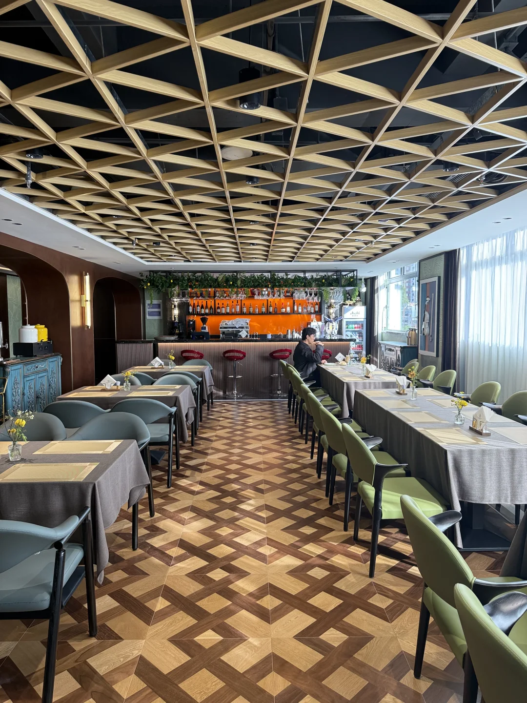 中西融合的餐点很有创意,咖啡、下午茶也做得精致。晚上能喝精酿、威士忌,“日咖夜酒”的复合空间,氛围直接拉满。露台庭院傍晚去坐,吹着风,看着周围的老建筑和梧桐树,治愈且松弛。