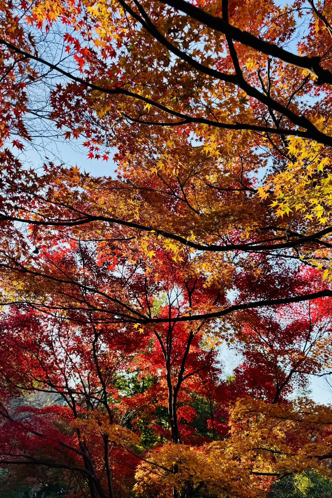 当阳光透过枫林,红、橙、黄便在枝桠间跳起了圆舞曲。这片被大自然打翻的调色盘,把每一片枫叶都绘成灵动的音符,奏响了深秋最绚烂的乐章。 抬眸间,仿佛坠入一场色彩的梦境,每一缕光影都在诉说着秋的温柔与热烈。