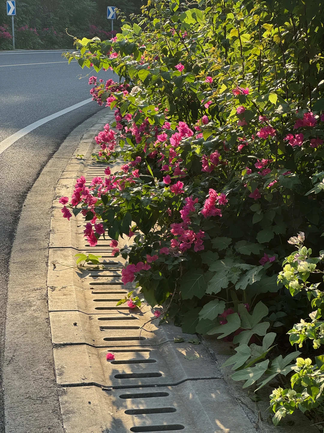 市政府把一整个海岸线都种上三角梅,白的,粉的,玫红的