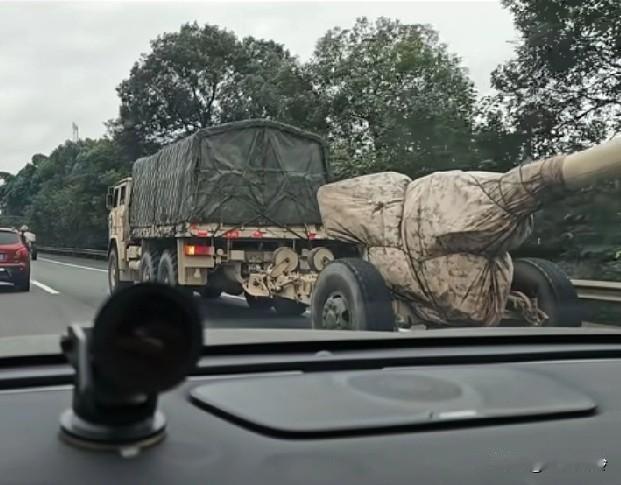 为啥要包起来?火炮犁地装备,松土用的,牵引车未按规定悬挂机动车号牌! 这个0几年见过,当时第一次来海训的,也是车拉式!在家后面的马路上可看过瘾了。这款……摆在博物馆的吧,152牵引式榴弹炮,过时了主要训练用,现在作战是自行152,不用不行啊,海量的弹药库存,够再打一场中等规模的陆战
