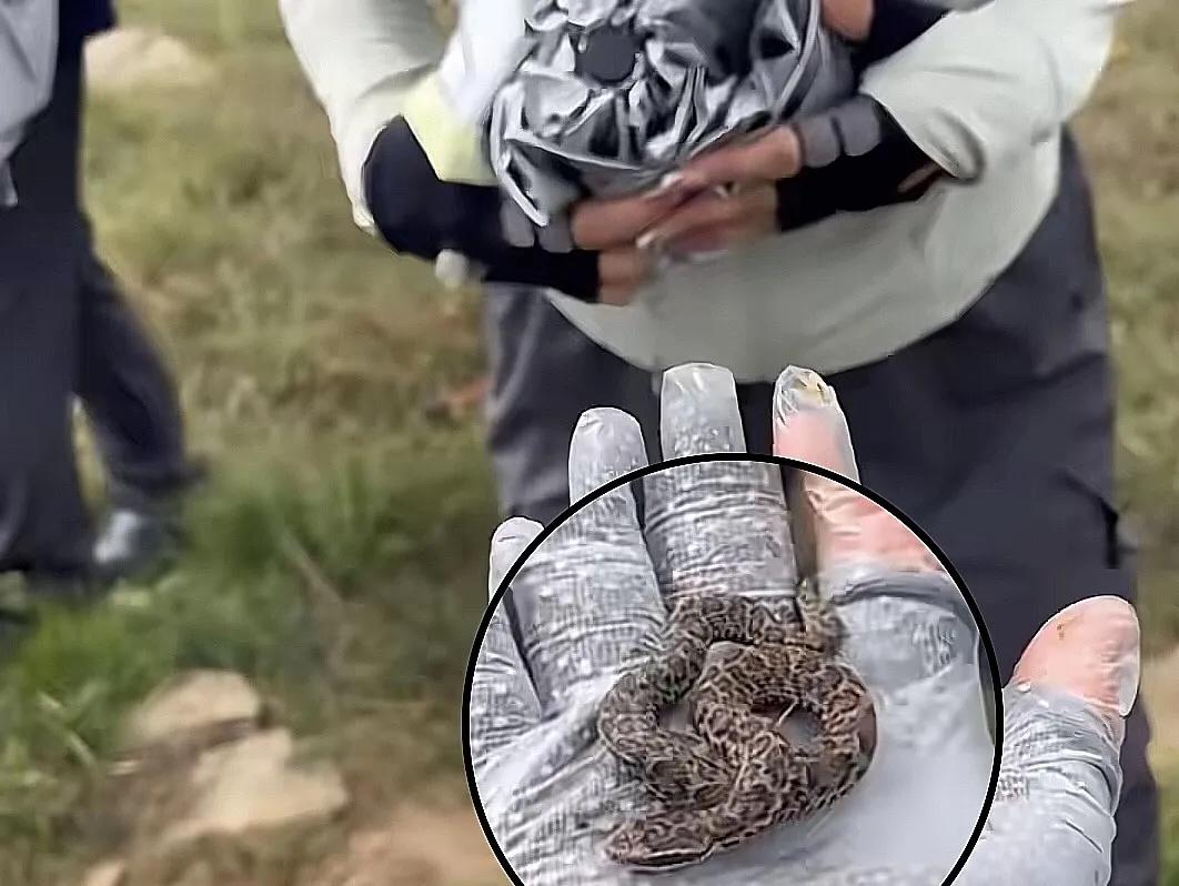 野外的蛇类很多具有毒性,仅凭外观很难准确判断是否危险,像图中这种蛇,从三角头和花