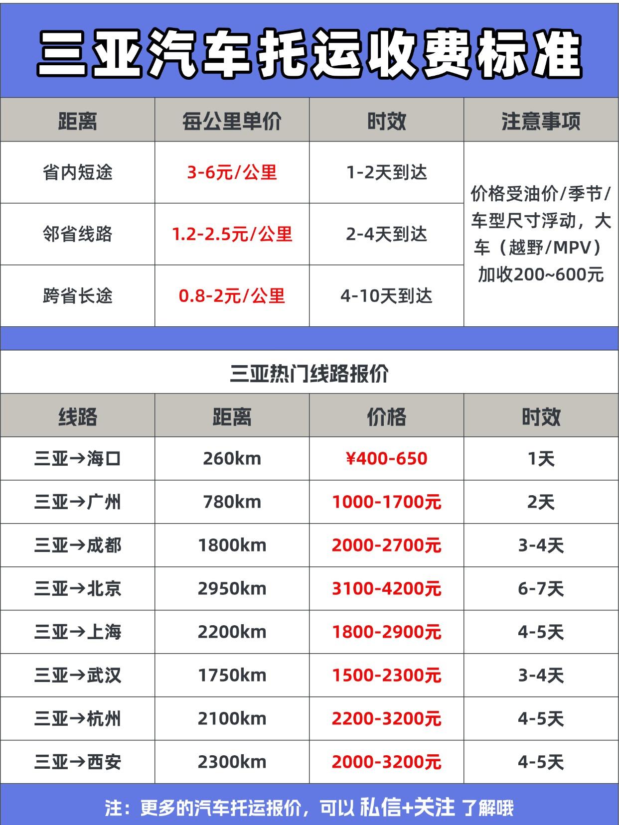 📍 全国托运报价区间 & 时效 💰 基础运费 小型车:1.2元~2元/公里 SUV/商务车:1.5元~2.5元/公里 ⏱ 时效参考 邻近省份:2-4天 东北/西北:5-8天 ⚠️ 旺季浮动 +15%~30% ⏰ 预约黄金时间 至少提前3-5天! ▶︎ 旺季(寒暑假/春节)→ 提前7天锁定车位 ▶︎ 临时约车?加急费 +¥300起! 🔒 托运安全防护全公开 ✅ 专业级固定:4点绑带+车轮防滑支架 ✅ 独立保险单:保额达车辆估值80%(可自费加保) ✅ 全程GPS监控:小程序实时追踪位置 ✅ 运前验车存档:360°视频记录划痕/油表 ✅ 封闭式笼车运输:防雨防尘,减少剐蹭 🙋♀️ 划重点:签合同必须核对「保险条款」和「验车清单」! ✨ 托运防坑指南 1️⃣ 低价陷阱 → 低于1元/公里慎选! 2️⃣ 隐性收费 → 确认是否含装卸/停车费 3️⃣ 保险漏洞 → 保额不足当场补购