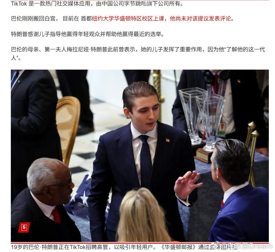 🔻举贤不避亲?纽约邮报:特朗普的19岁儿子巴伦被推荐加入TikTok的董事会。