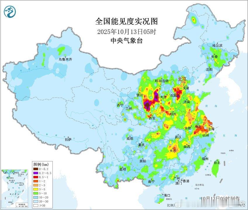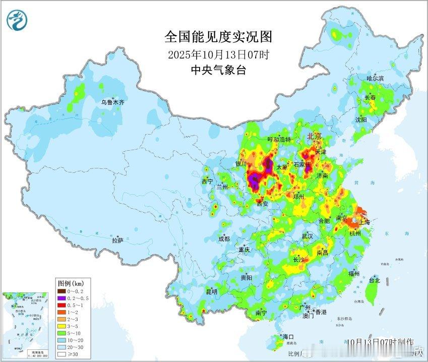 【大雾】今晨在甘肃东部、陕西北部和整部、山西中南部、河北中南部出现大雾,部分站点出现强浓雾,能见度不足200米,比如:甘肃镇原、西峰、宁县、正宁、华池、陕西志丹、延安、横山、榆林、子洲、华州、华山、山西永和、灵石、武乡、沁县、隰县、乡宁、侯马、河北满城、安国、无极、广宗。