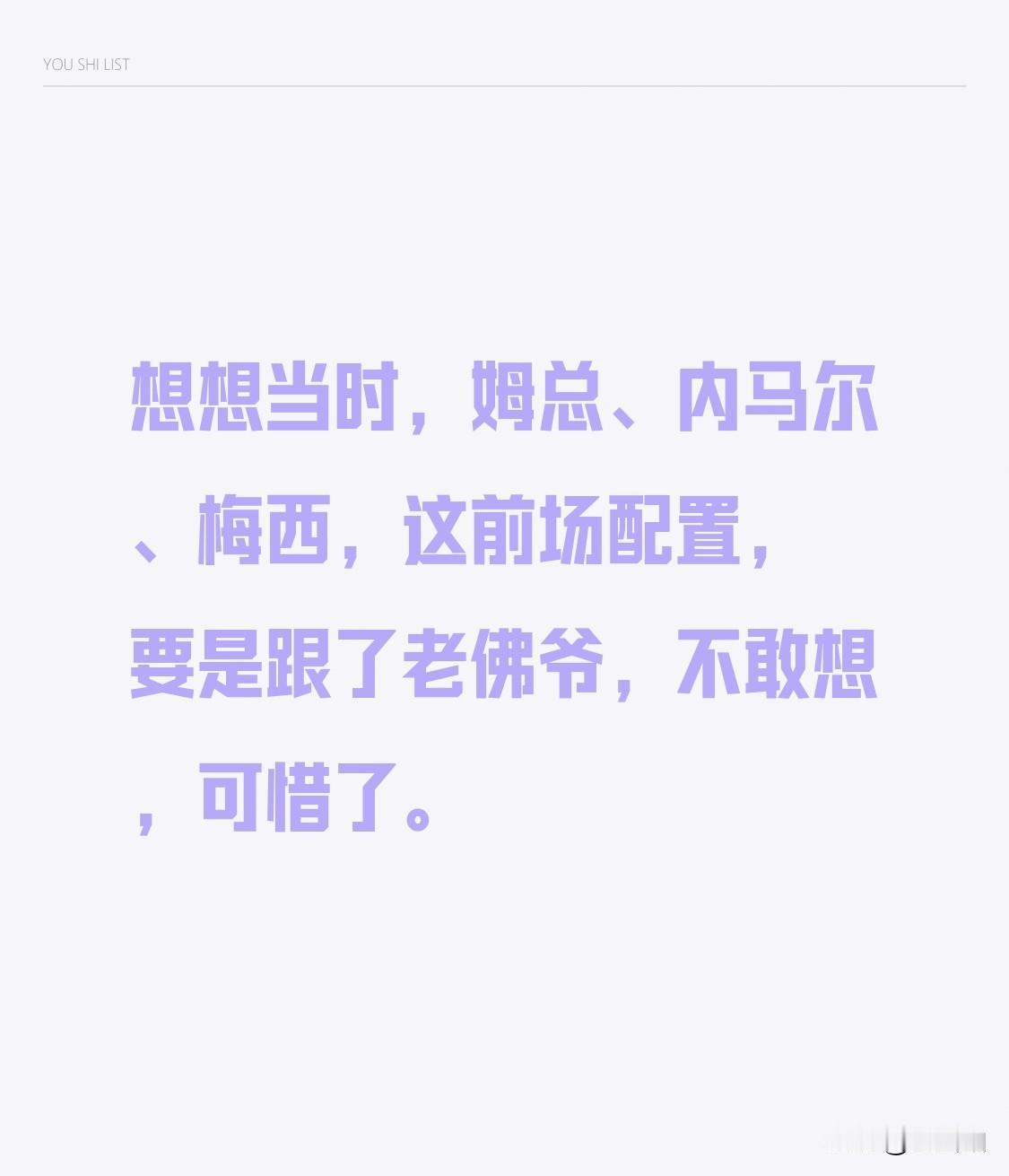 想想当时,姆总、内马尔、梅西,这前场配置,要是跟了老佛爷,不敢想,可惜了。