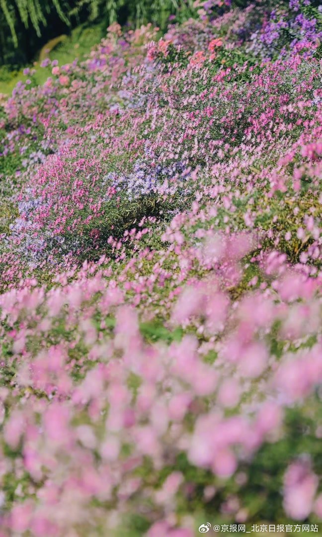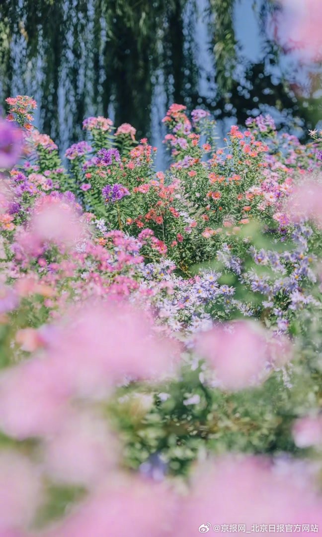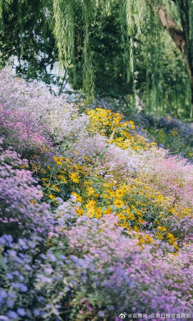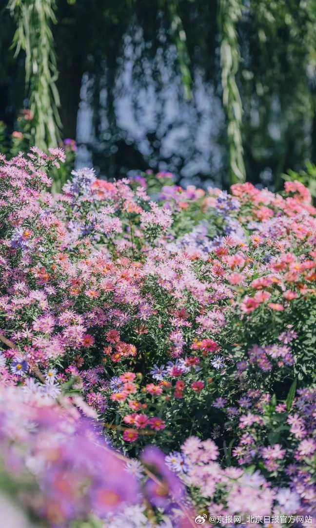 近看紫菀,更是别有韵味。昆玉河边有七八种色彩不同的紫菀花,虽然花朵小而纤细,但花量较大,花瓣带着浅浅卷边,微风过处,花浪轻涌,氛围感拉满。昆玉河上,偶有古香古色的画舫游船经过,紫菀与游船、垂柳、流水、蓝天白云相映成趣。#北京昆玉河两岸紫菀花海出圈#(记者 胡子傲 潘之望 部分图片来源 北京海淀官方发布)