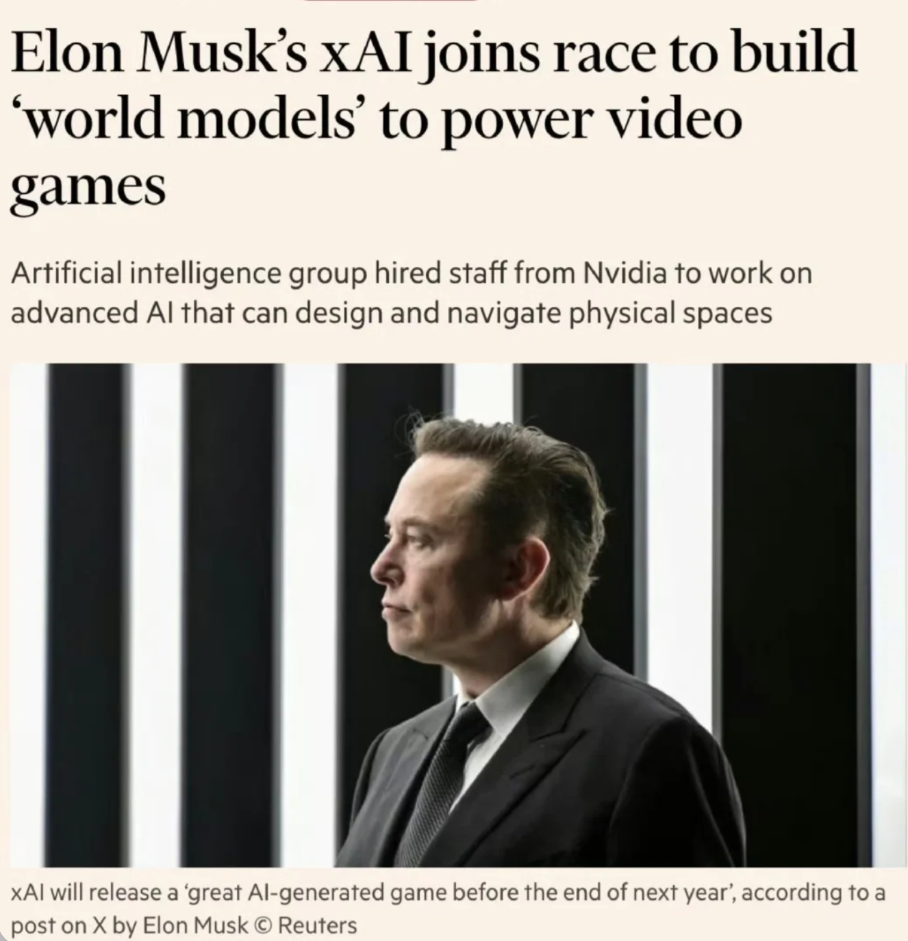 同时,马斯克还从英伟达挖走两位研究员。首站是游戏,用 AI 自动生成 3D 交互世界,下一步瞄准机器人。并且马斯克还强调,xAI 将在明年底之前发布一款由AI生成的优秀游戏。