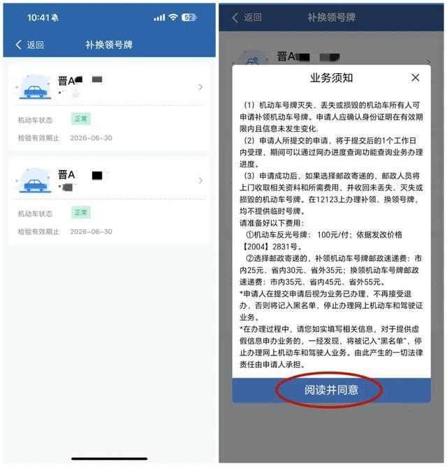 5、信息核对无误后,按业务类型提交相应业务申请,办理补领、换领号牌业务均不提供临时号牌(若选择换领号牌,需交回损坏的旧号牌)