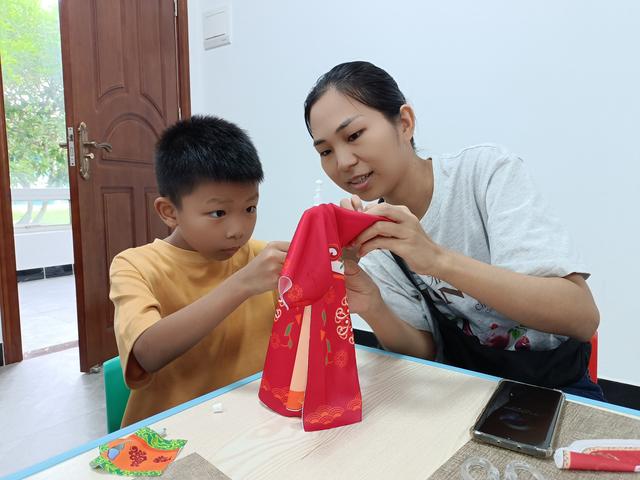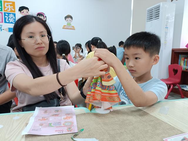 活动中,讲师首先介绍了我国传统服饰文化的演变和发展,从汉服的起源到现代汉服的转变,系统地讲述了我国传统民族服饰的特点、功能和历史背景,并组织观看了中国汉服的演变动画视频,让在场的亲子家庭成员、特别是少年儿童身临其境。在亲子互动环节,在场的家长和孩子按照讲师及视频的引导开始动手制作,采用中国特色传统布料,通过立体剪裁,把一块块印有精美图案的传统布料剪裁成合适的尺寸,通过粘贴的方法制作出一件件精美的汉服小样品,精美绝伦,赏心悦目,让孩子们获得了满满的成就感,对我国传统民族服饰有了全新的认识。
