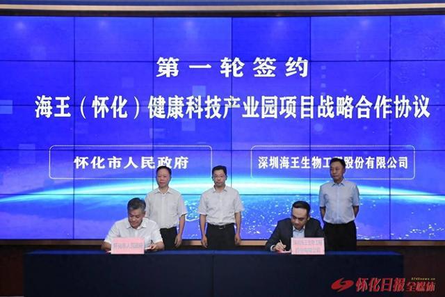 海王生物作为中国医药行业领军企业、中国500强企业深圳海王集团的核心子公司,是一家覆盖医药产品研发、医药工业制造、医药商业流通、医药零售连锁全产业链的大型综合性企业集团。会上,怀化市人民政府与海王生物签署海王(怀化)健康科技产业园项目战略合作协议,怀化国际陆港经开区与浙江海王数据服务有限公司签署海王(怀化)健康科技产业园项目入园合同。双方约定将充分发挥各自优势,共同建设健康产品生产基地、医疗器械大型现代智能化储存服务平台、维保集约化智能服务中心和配送供应链数字化体系,着力把海王(怀化)健康科技产业园打造成大西南大型医疗用品生产、研发和销售区域中心。这一合作,将为怀化中医药产业高质量发展注入强劲动力,更为怀化构建“5+10”现代产业体系提供有力支撑、作出积极贡献。