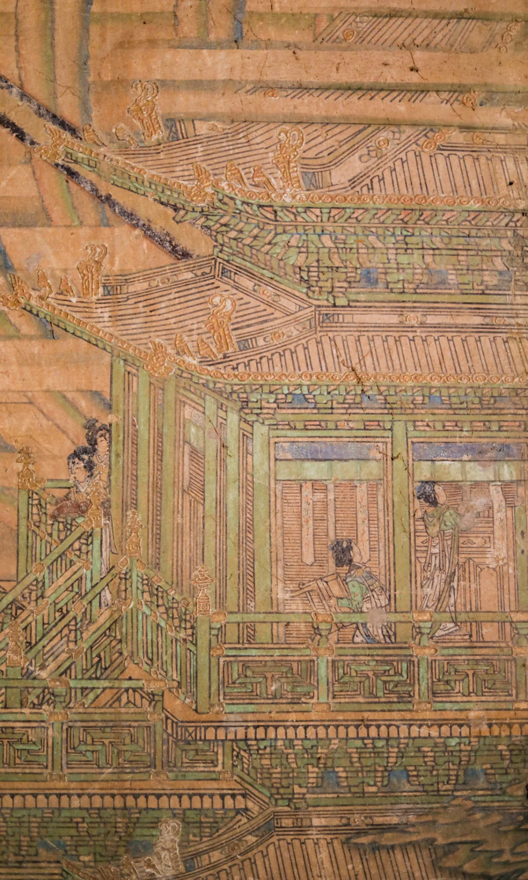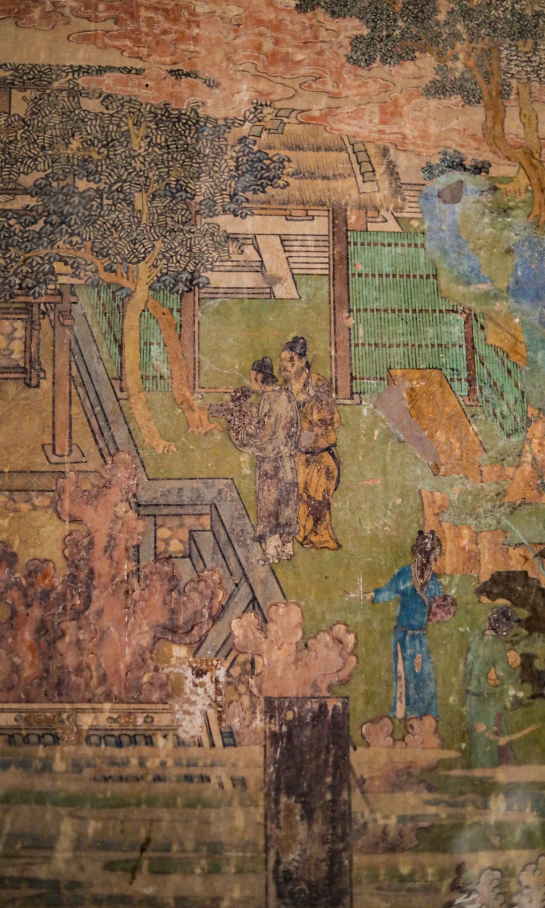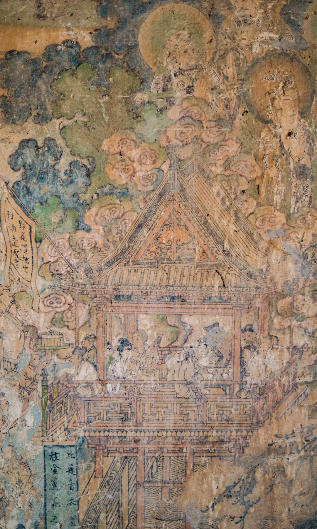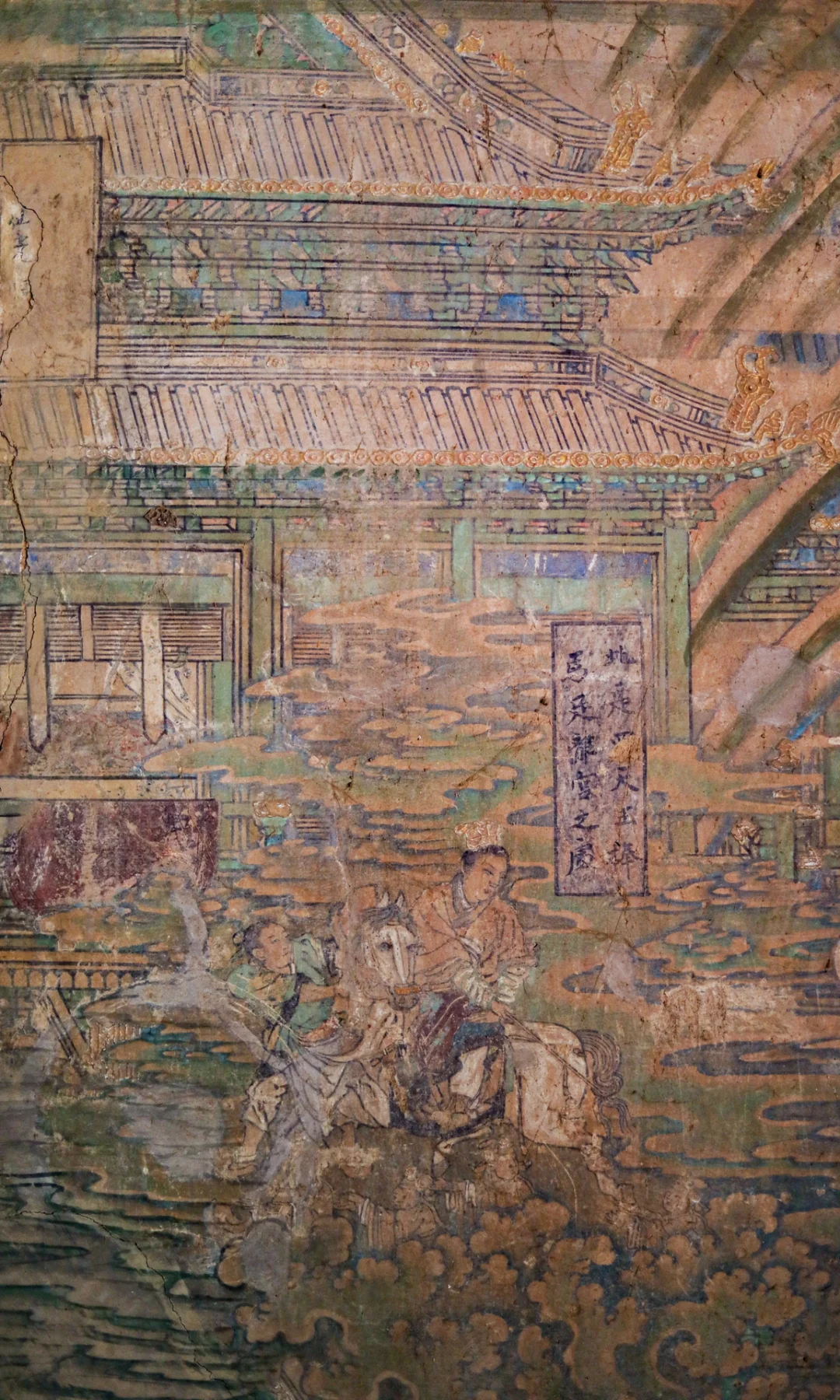 金贞元二年(1154年),站在空空如也的岩山寺白墙下,时任御前承应画匠的王逵再次回想起三十多年前靖康之变那个夜晚,昔日北宋都城汴梁的繁华仍旧历历在目。他拿起笔,借本生和佛传故事的骨,附上东京梦华录的皮,把珍藏于心的故国旧都永远留在了文殊殿四壁。彼时距离同朝画友王希孟「千里江山图」的诞生已过半个多世纪,而青绿山水的笔墨在这昏暗的殿里再次也是最后一次回光。