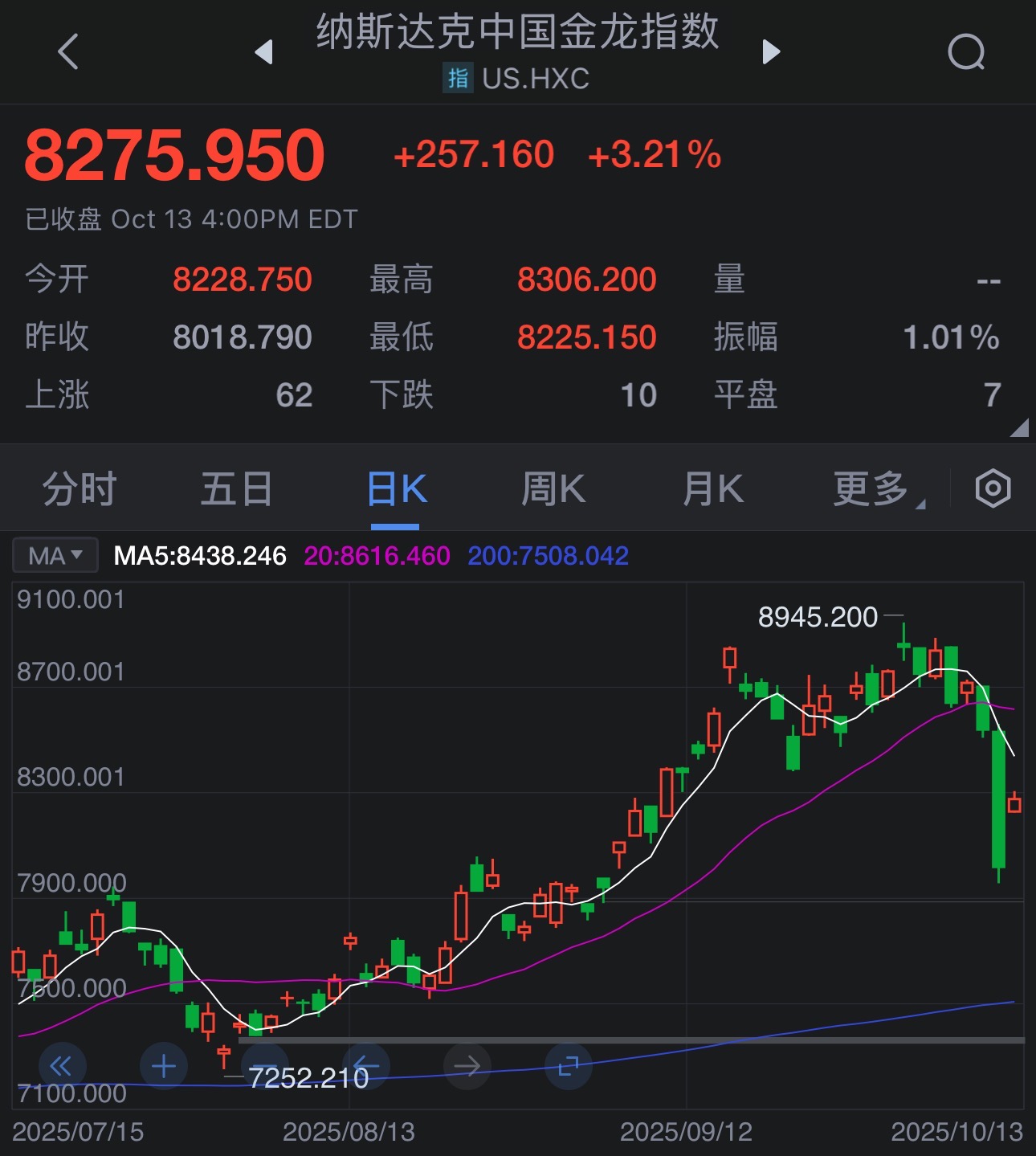周一热门中概股普涨,纳斯达克中国金龙指数涨3.21%。蔚来涨约7%,金山云涨超6%,阿里巴巴、京东涨超4%,百度、小鹏汽车涨超3%。